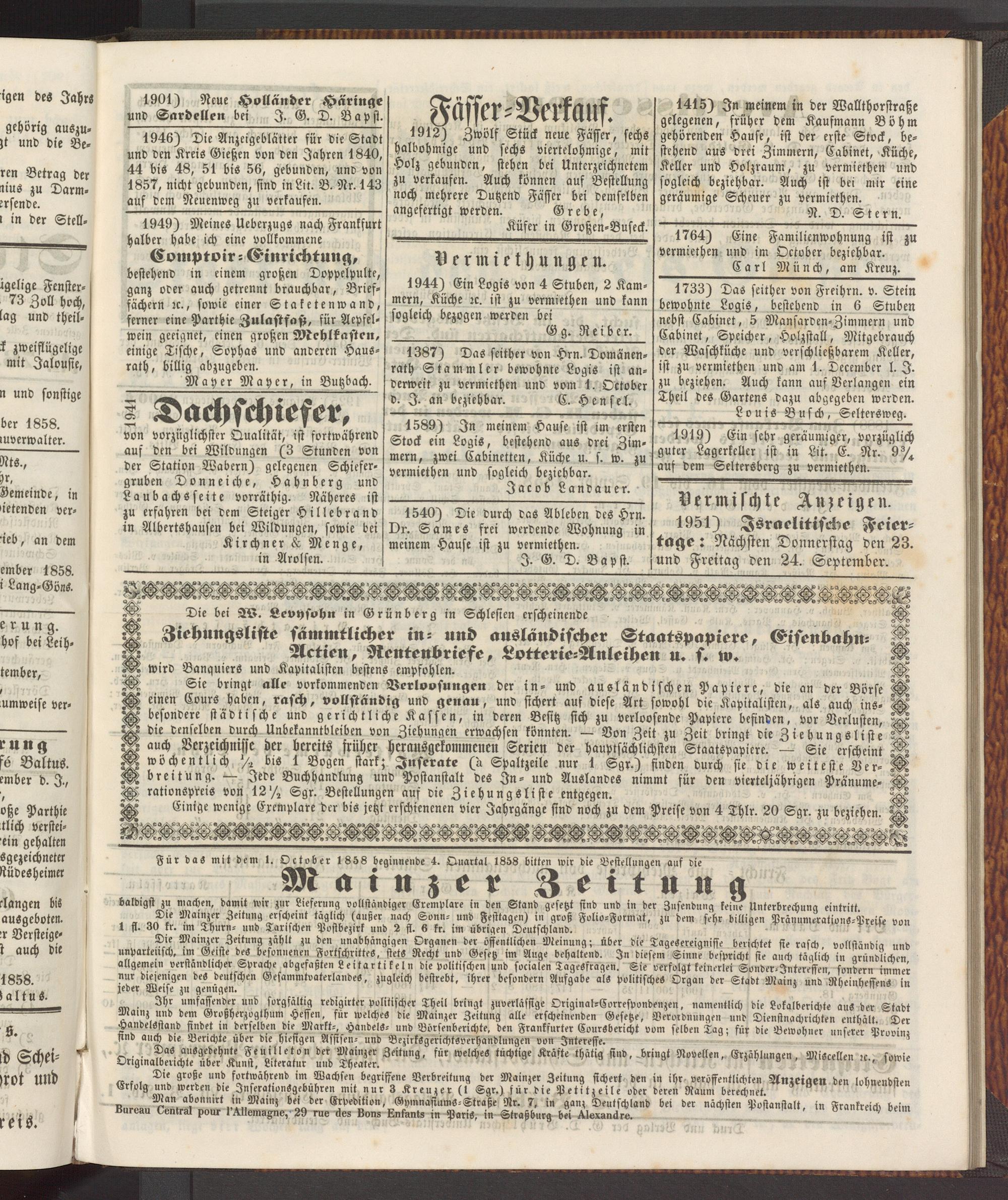 Anzeigeblatt für die Provinzialhauptstadt Gießen. 1840-1867