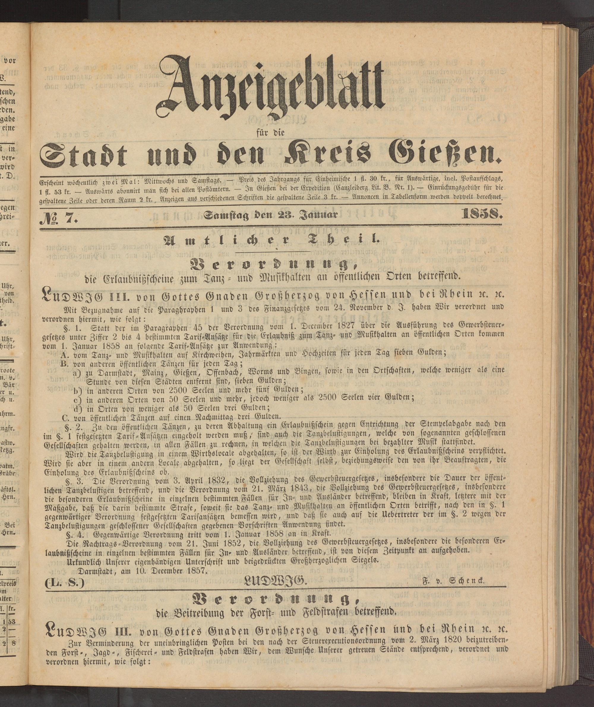 Anzeigeblatt für die Provinzialhauptstadt Gießen. 1840-1867