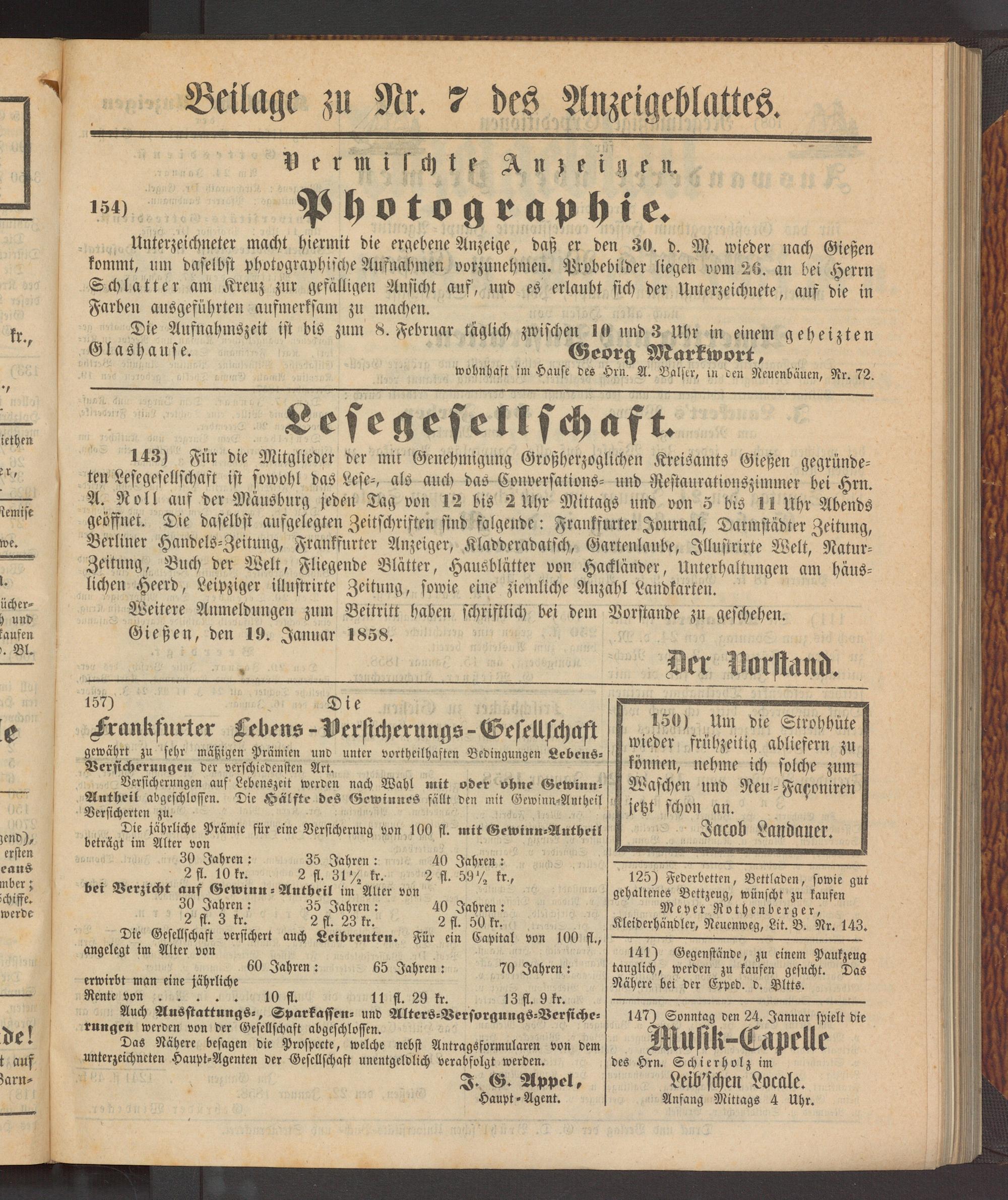 Anzeigeblatt für die Provinzialhauptstadt Gießen. 1840-1867