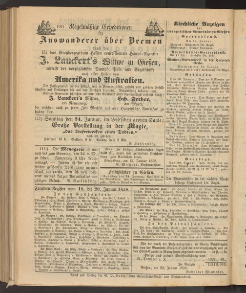 Anzeigeblatt für die Provinzialhauptstadt Gießen. 1840-1867