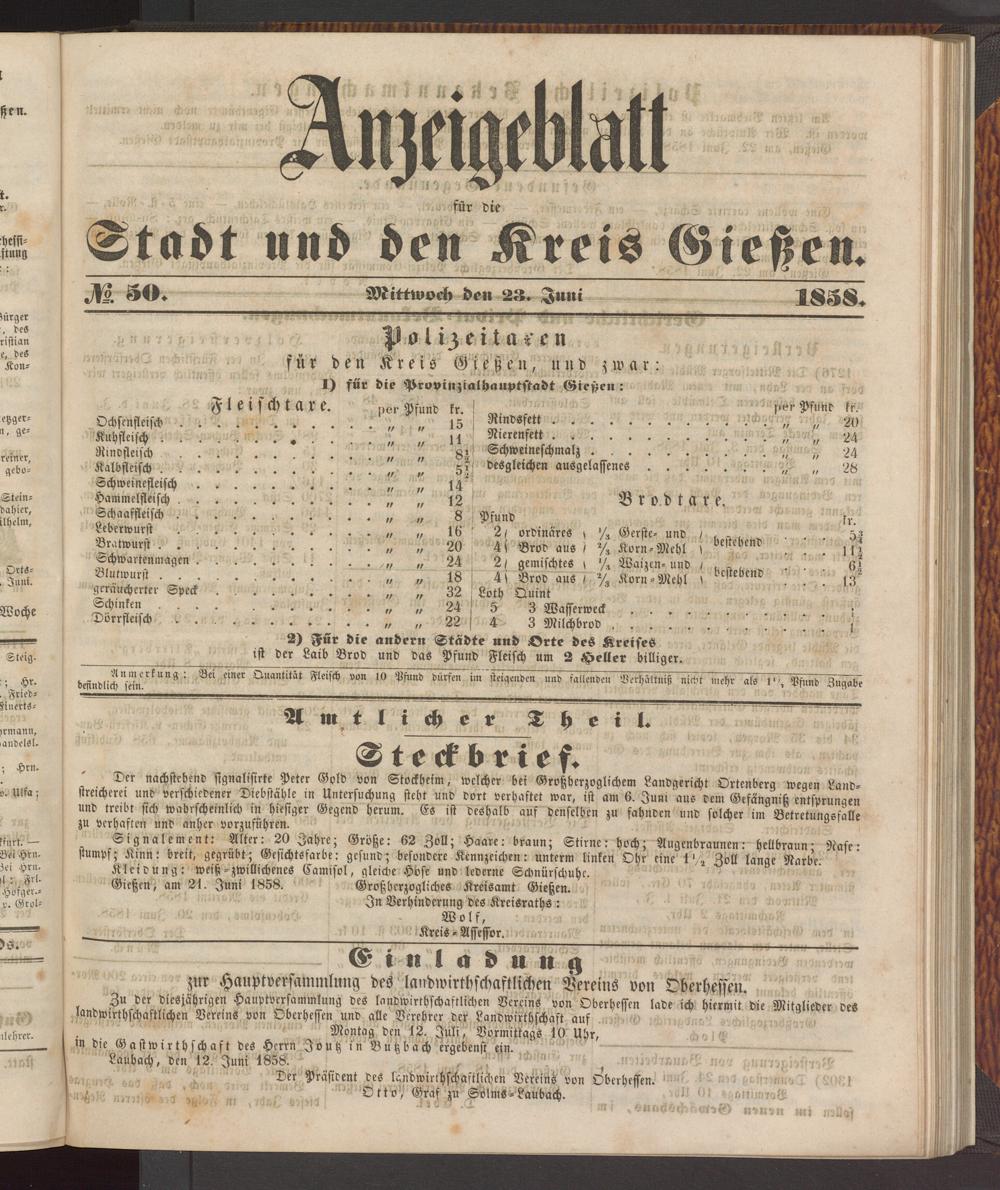 Anzeigeblatt für die Provinzialhauptstadt Gießen. 1840-1867