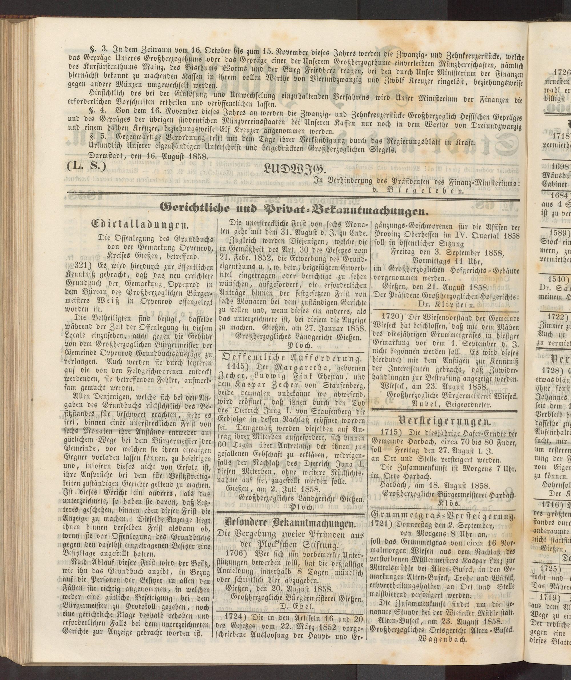 Anzeigeblatt für die Provinzialhauptstadt Gießen. 1840-1867