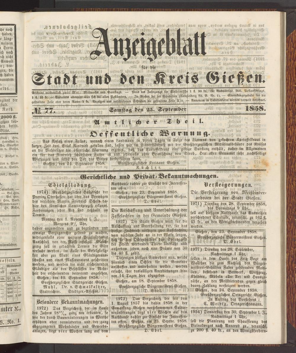 Anzeigeblatt für die Provinzialhauptstadt Gießen. 1840-1867