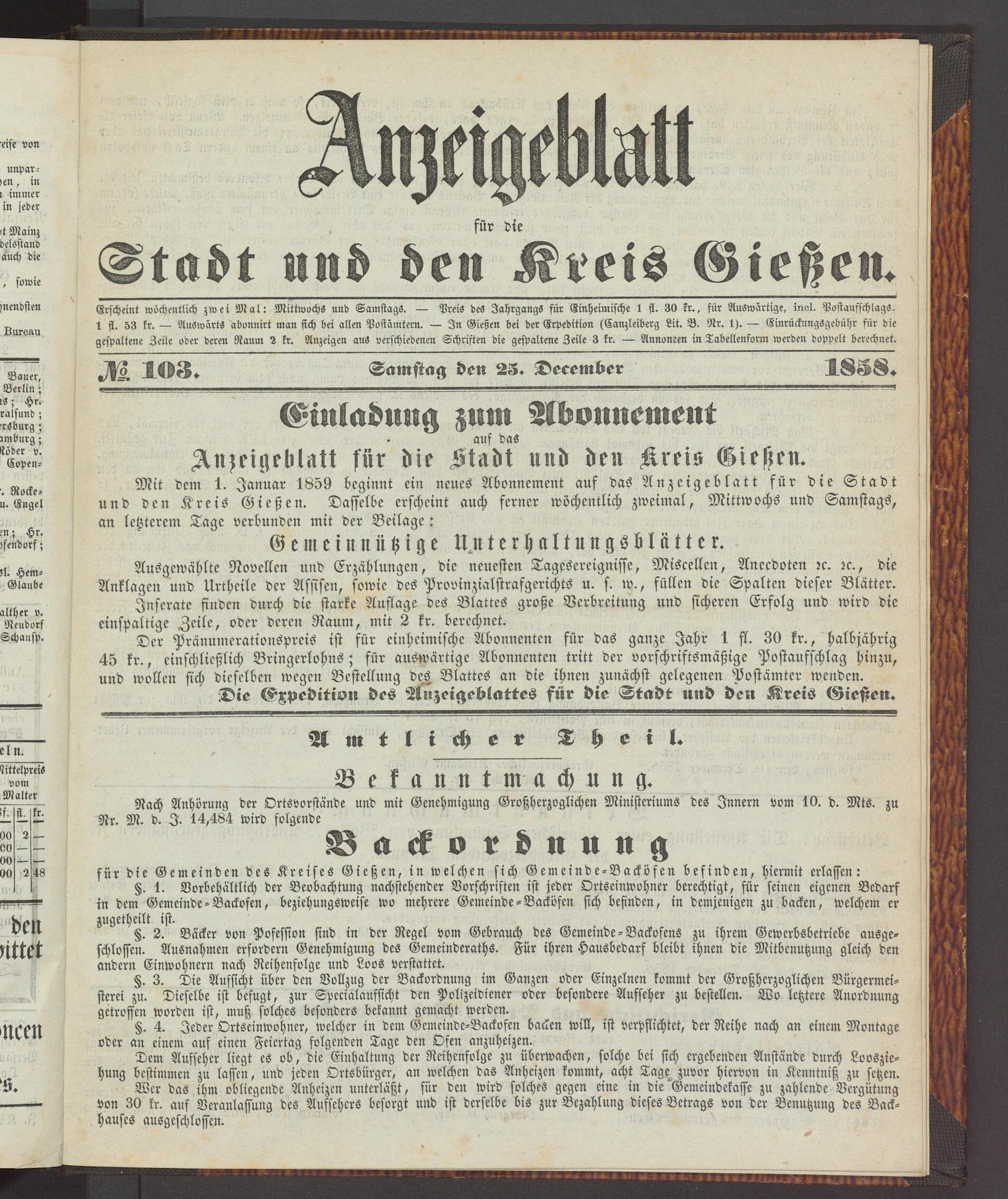 Anzeigeblatt für die Provinzialhauptstadt Gießen. 1840-1867
