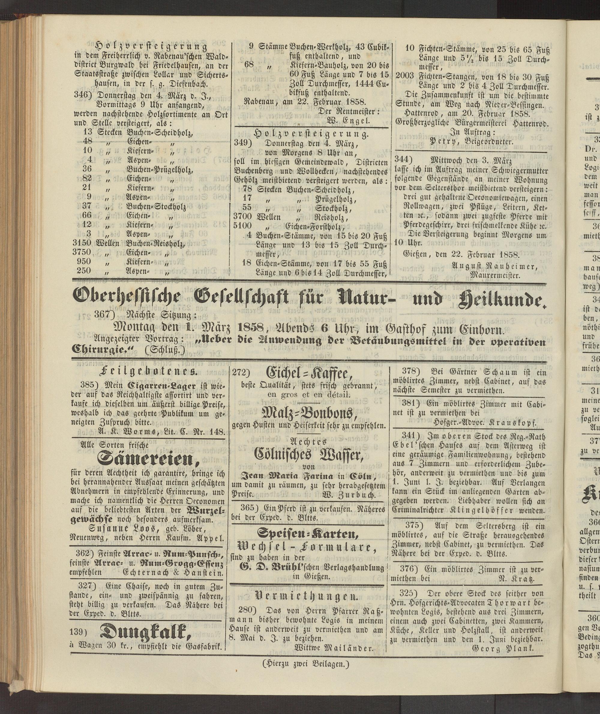 Anzeigeblatt für die Provinzialhauptstadt Gießen. 1840-1867