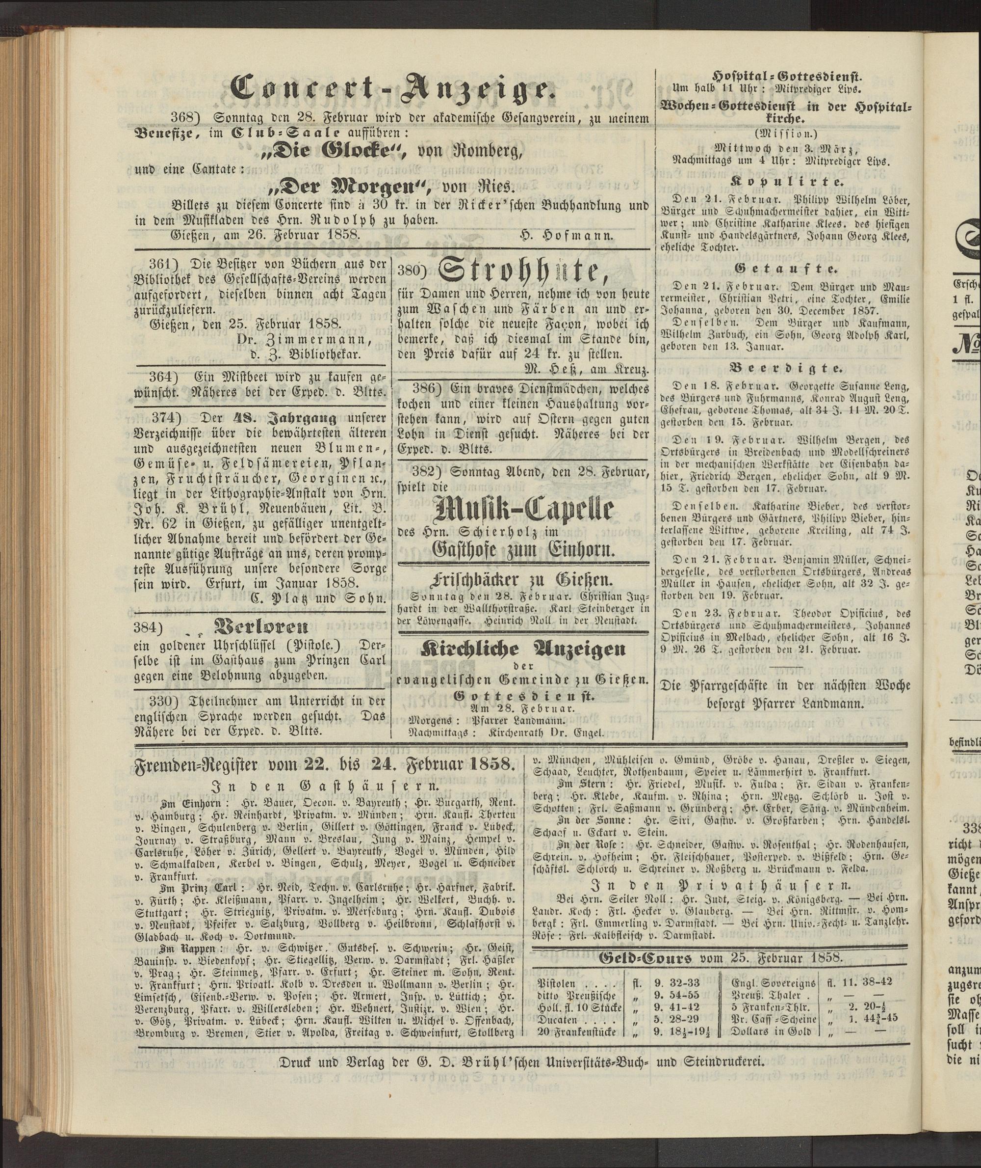 Anzeigeblatt für die Provinzialhauptstadt Gießen. 1840-1867