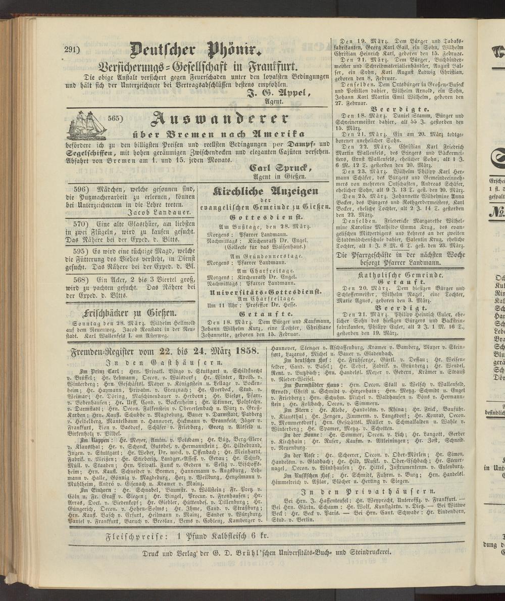 Anzeigeblatt für die Provinzialhauptstadt Gießen. 1840-1867