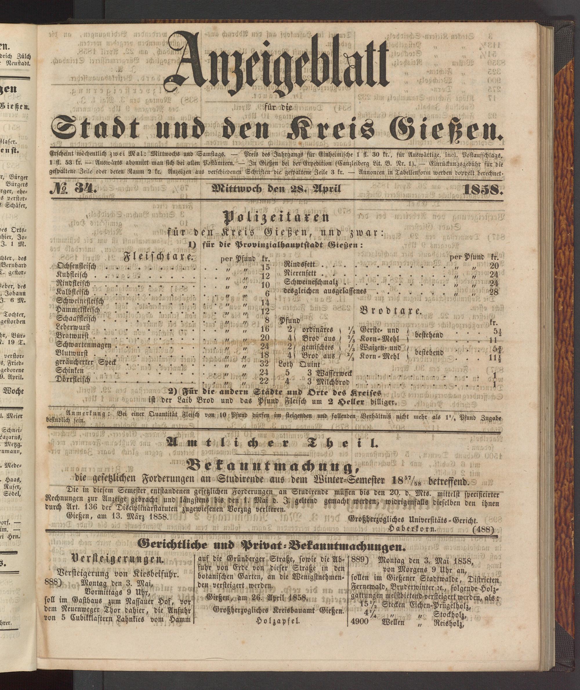 Anzeigeblatt für die Provinzialhauptstadt Gießen. 1840-1867