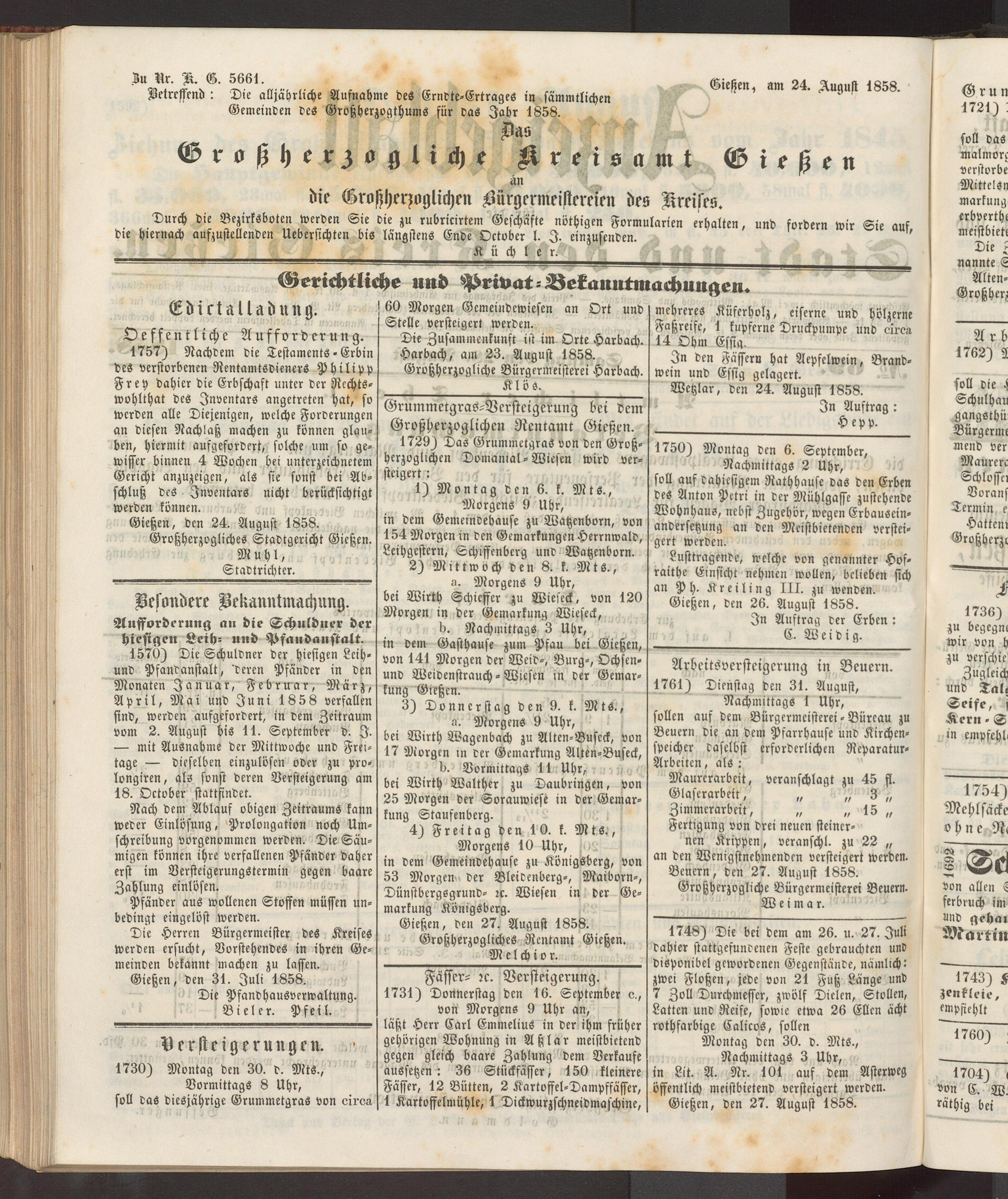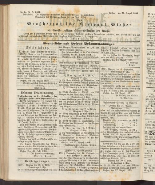 Anzeigeblatt für die Provinzialhauptstadt Gießen. 1840-1867