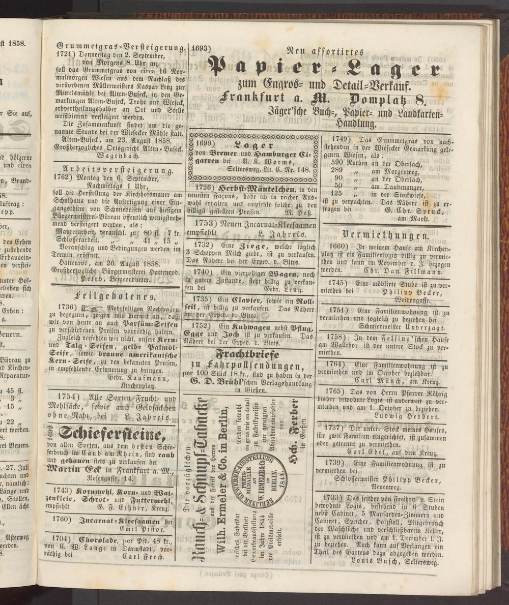 Anzeigeblatt für die Provinzialhauptstadt Gießen. 1840-1867