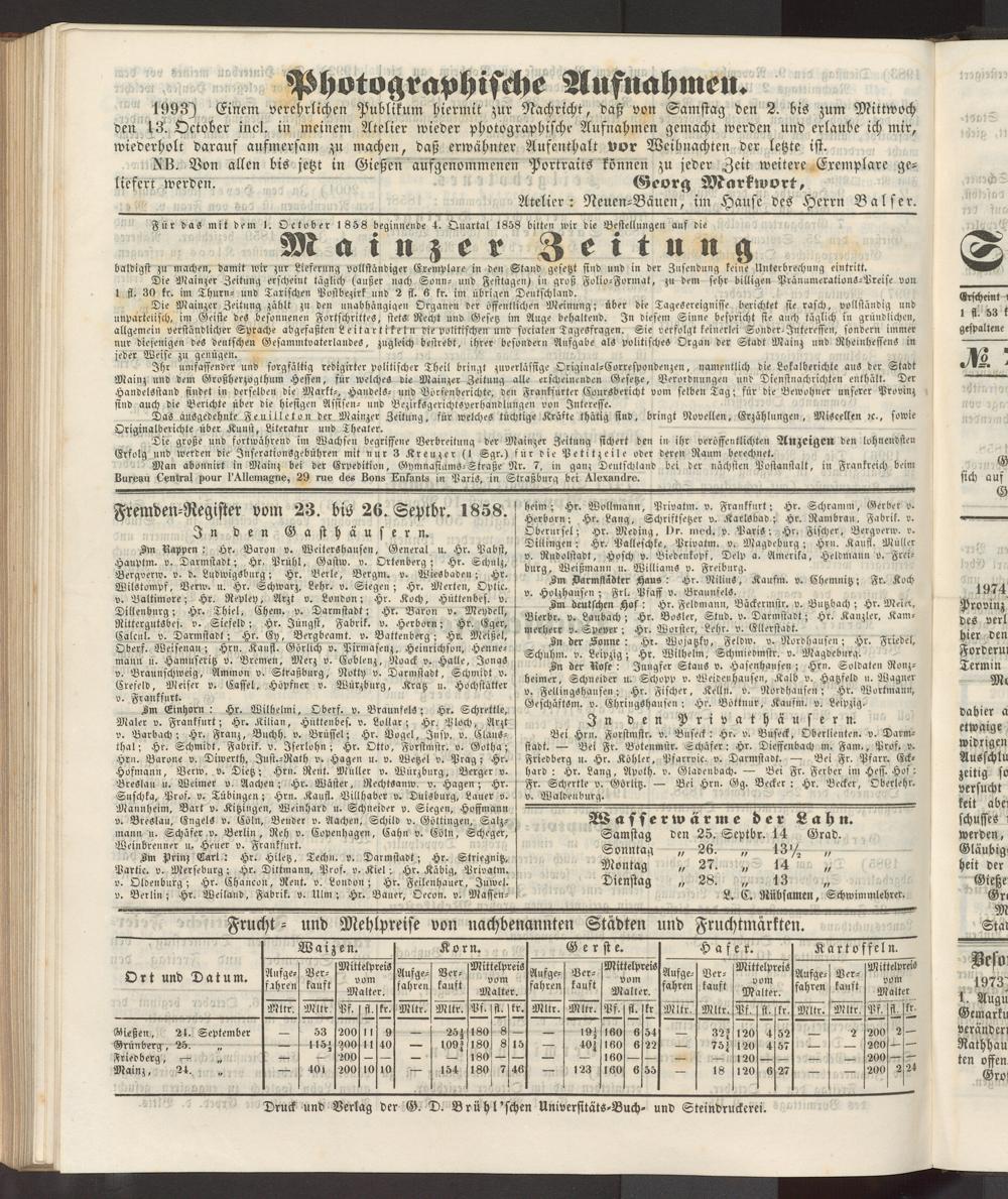 Anzeigeblatt für die Provinzialhauptstadt Gießen. 1840-1867