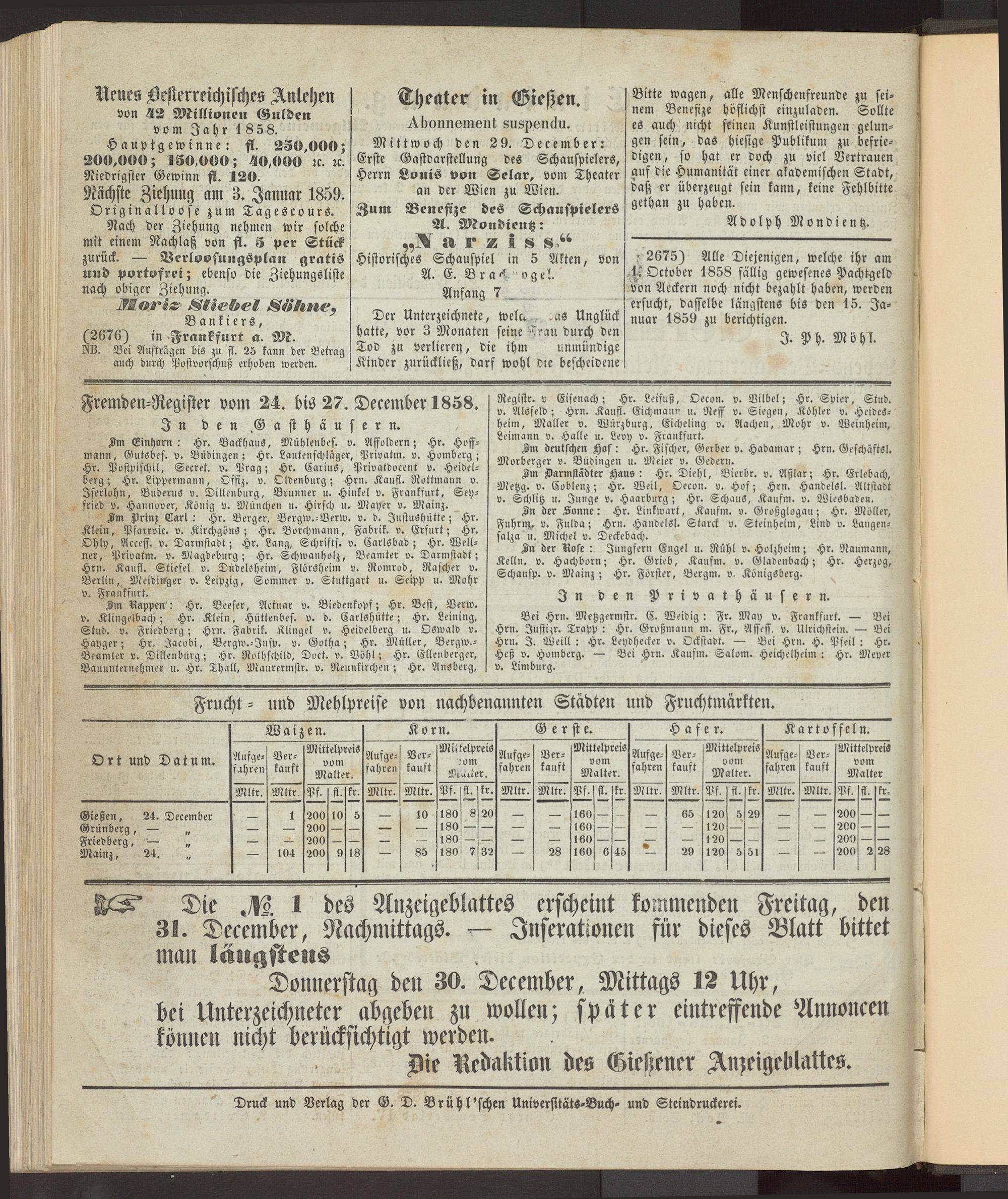 Anzeigeblatt für die Provinzialhauptstadt Gießen. 1840-1867