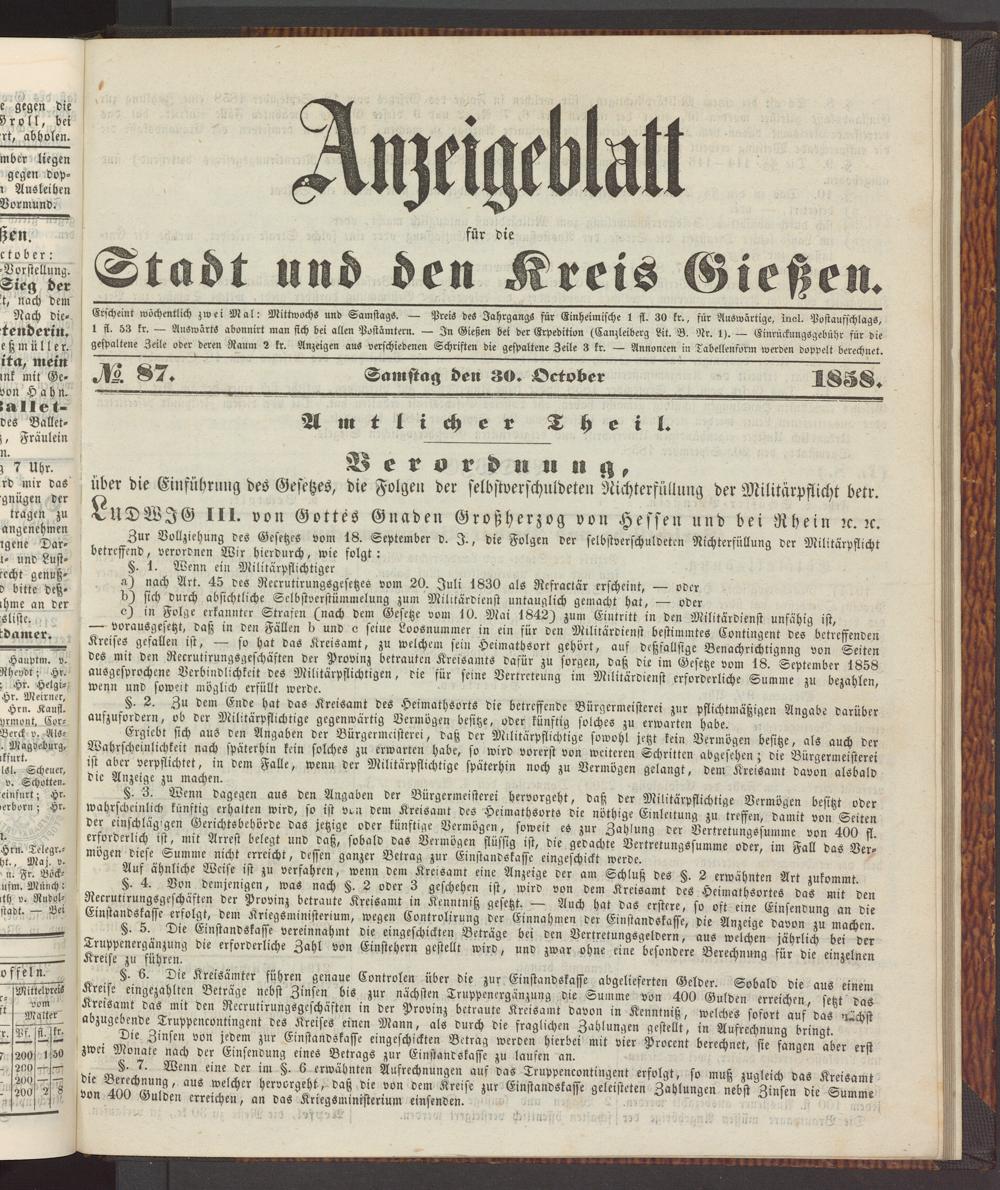 Anzeigeblatt für die Provinzialhauptstadt Gießen. 1840-1867