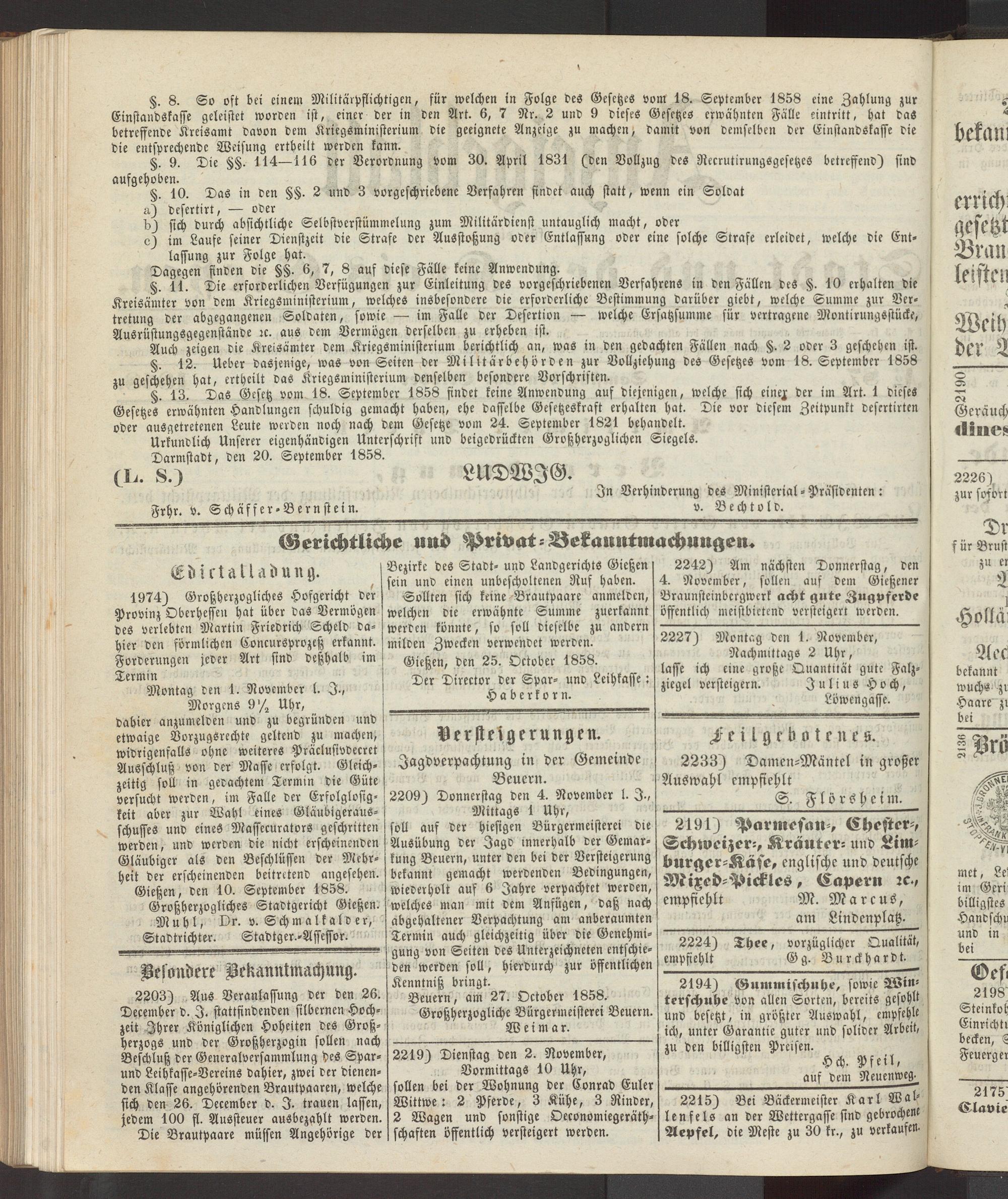Anzeigeblatt für die Provinzialhauptstadt Gießen. 1840-1867