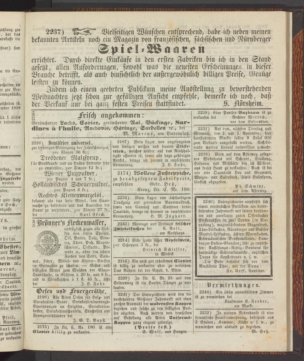 Anzeigeblatt für die Provinzialhauptstadt Gießen. 1840-1867