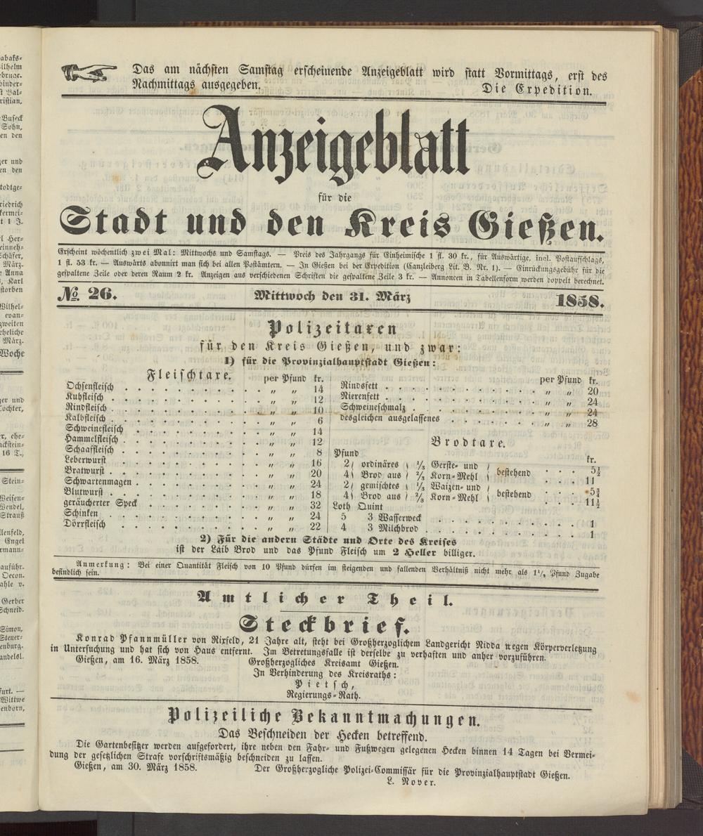 Anzeigeblatt für die Provinzialhauptstadt Gießen. 1840-1867
