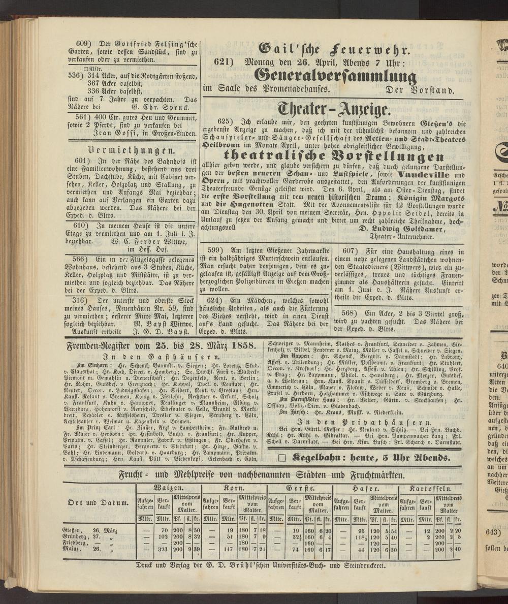 Anzeigeblatt für die Provinzialhauptstadt Gießen. 1840-1867