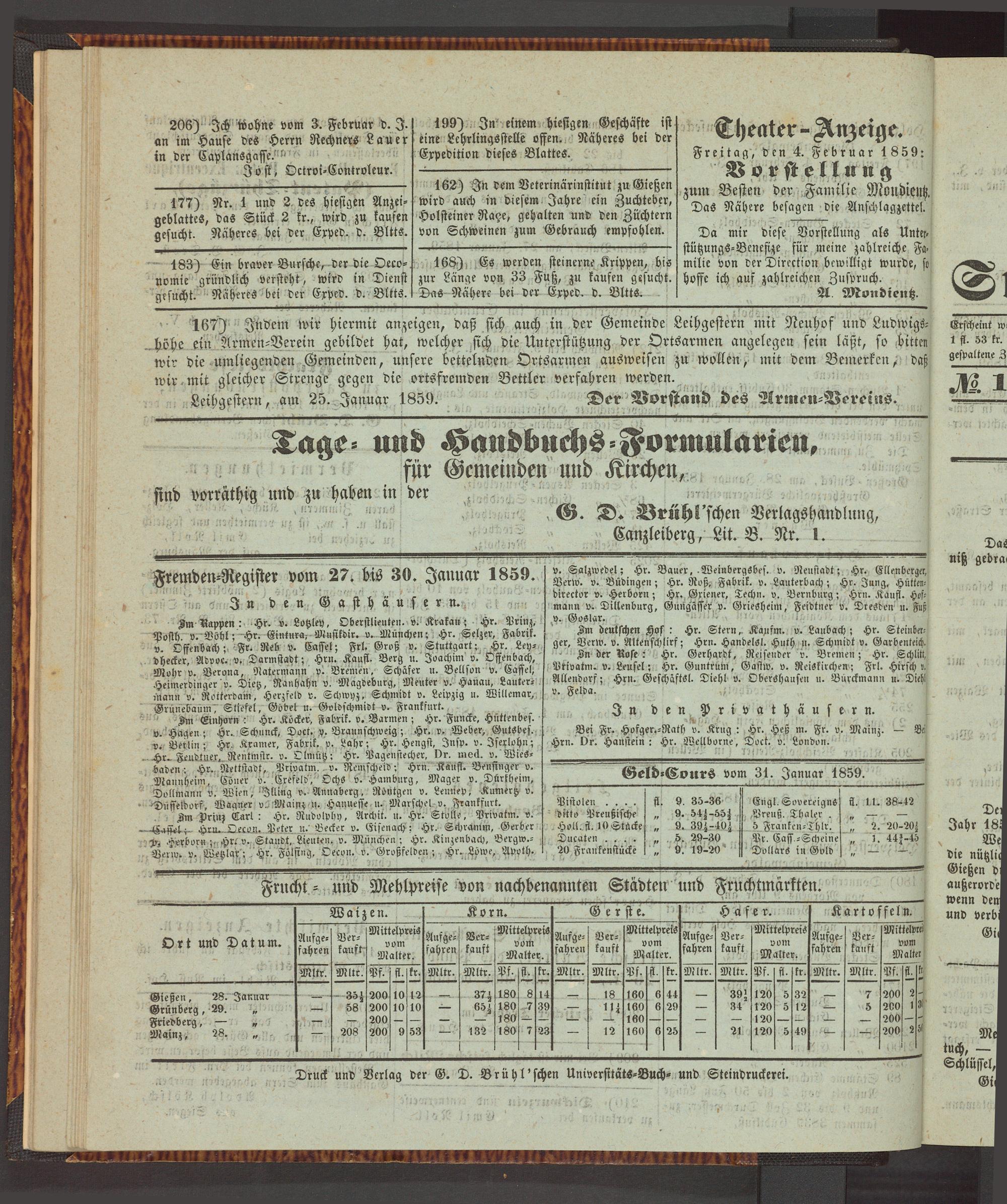 Anzeigeblatt für die Provinzialhauptstadt Gießen. 1840-1867