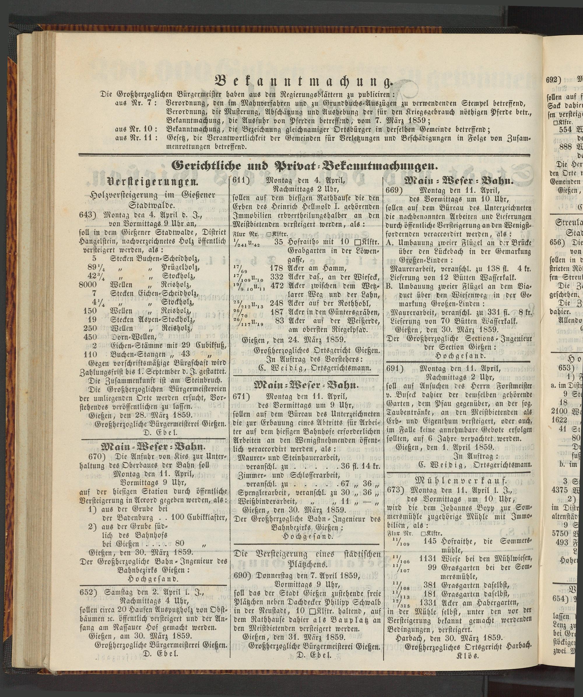 Anzeigeblatt für die Provinzialhauptstadt Gießen. 1840-1867