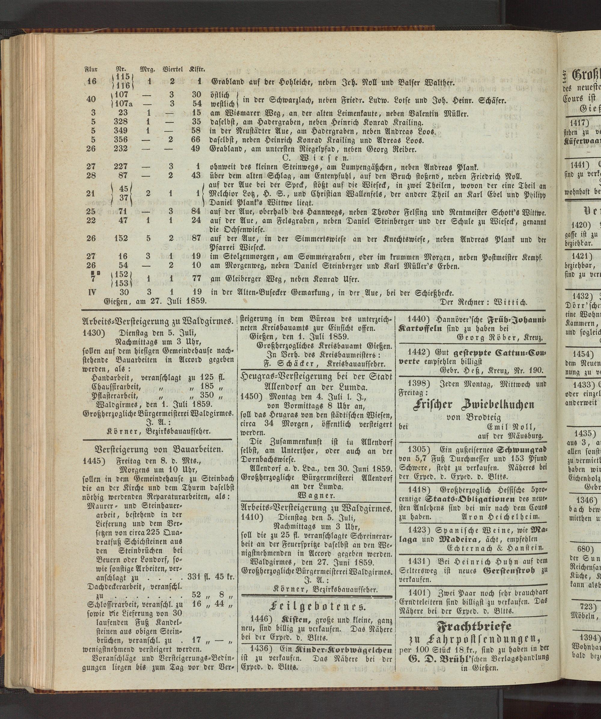 Anzeigeblatt für die Provinzialhauptstadt Gießen. 1840-1867