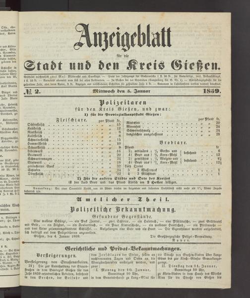 Anzeigeblatt für die Provinzialhauptstadt Gießen. 1840-1867