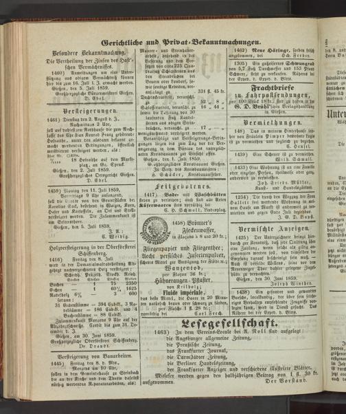 Anzeigeblatt für die Provinzialhauptstadt Gießen. 1840-1867