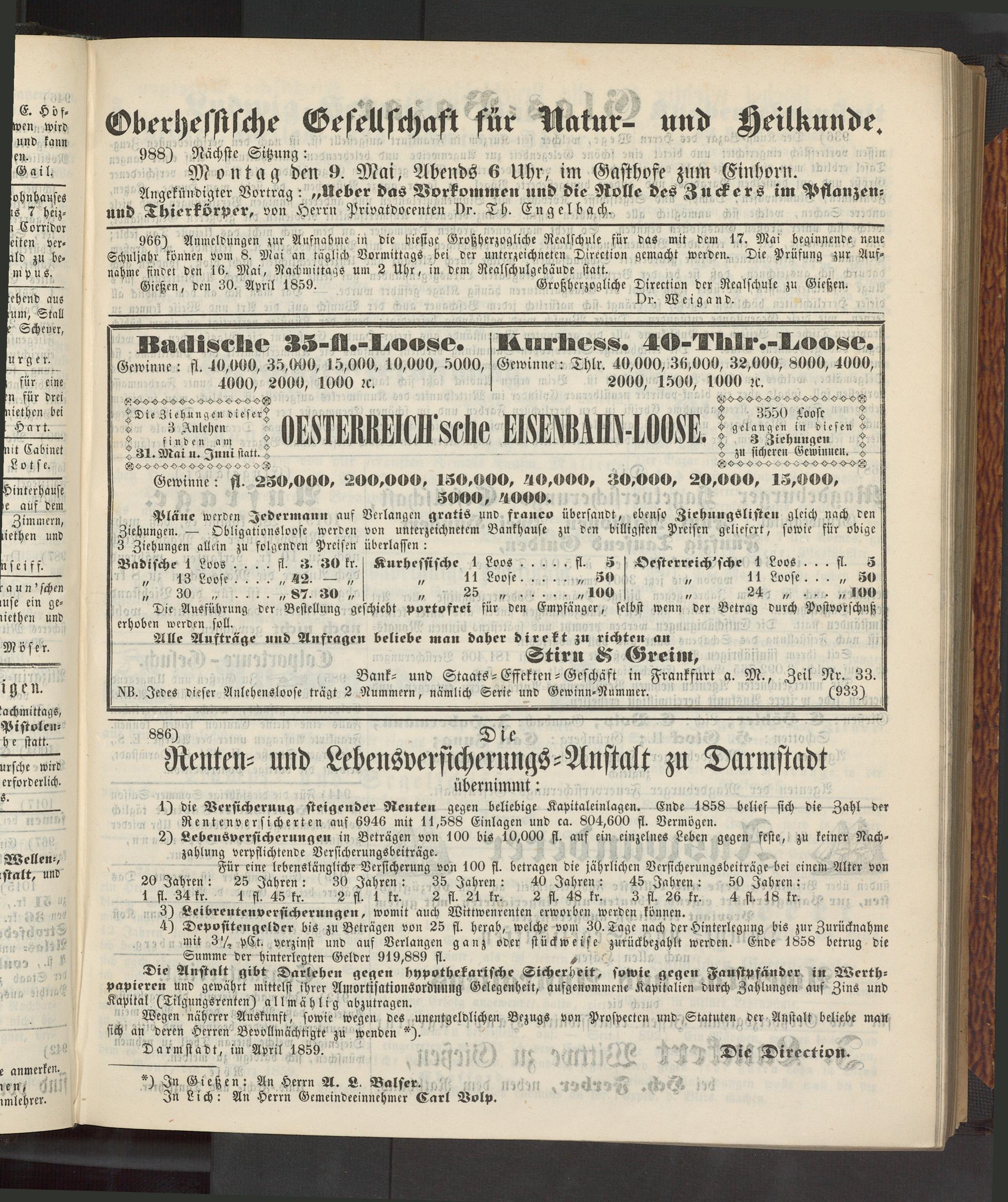 Anzeigeblatt für die Provinzialhauptstadt Gießen. 1840-1867