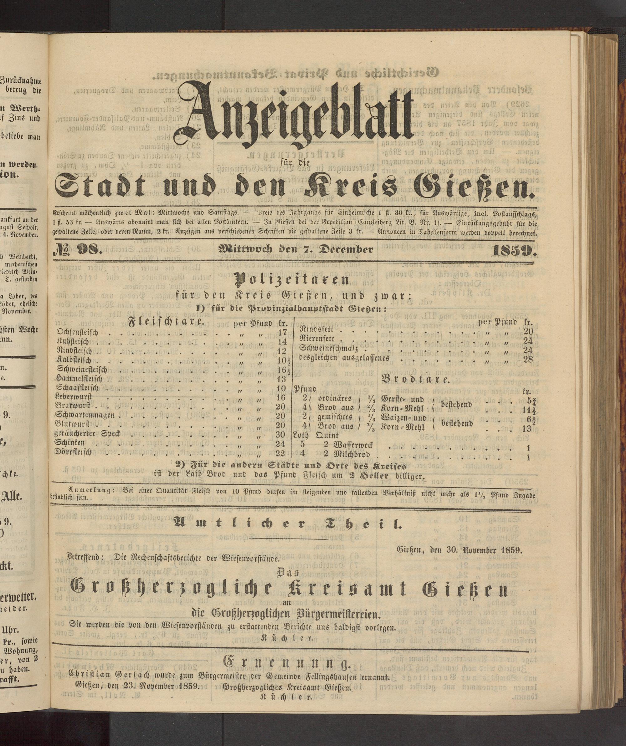 Anzeigeblatt für die Provinzialhauptstadt Gießen. 1840-1867