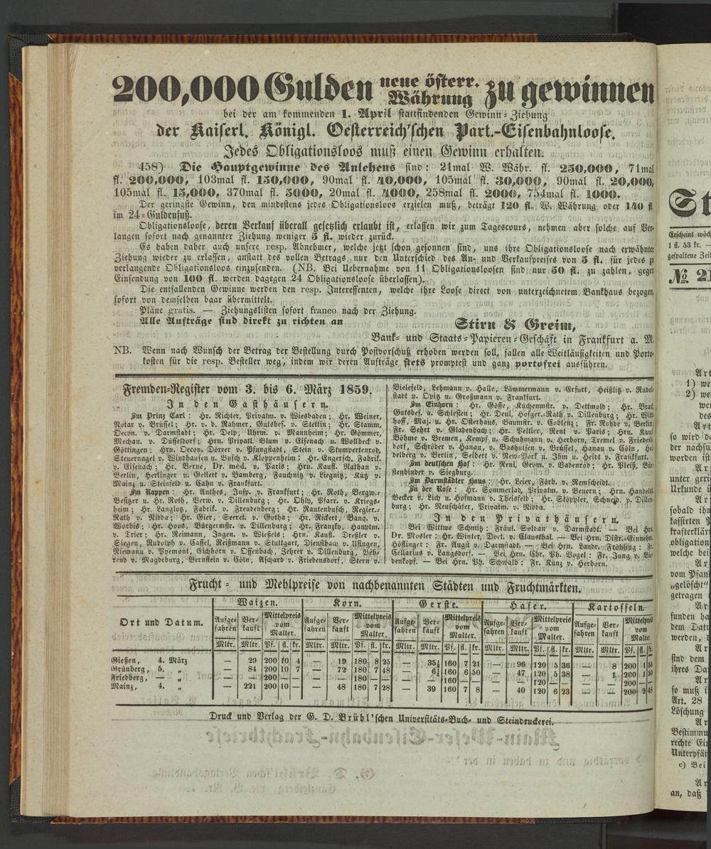 Anzeigeblatt für die Provinzialhauptstadt Gießen. 1840-1867