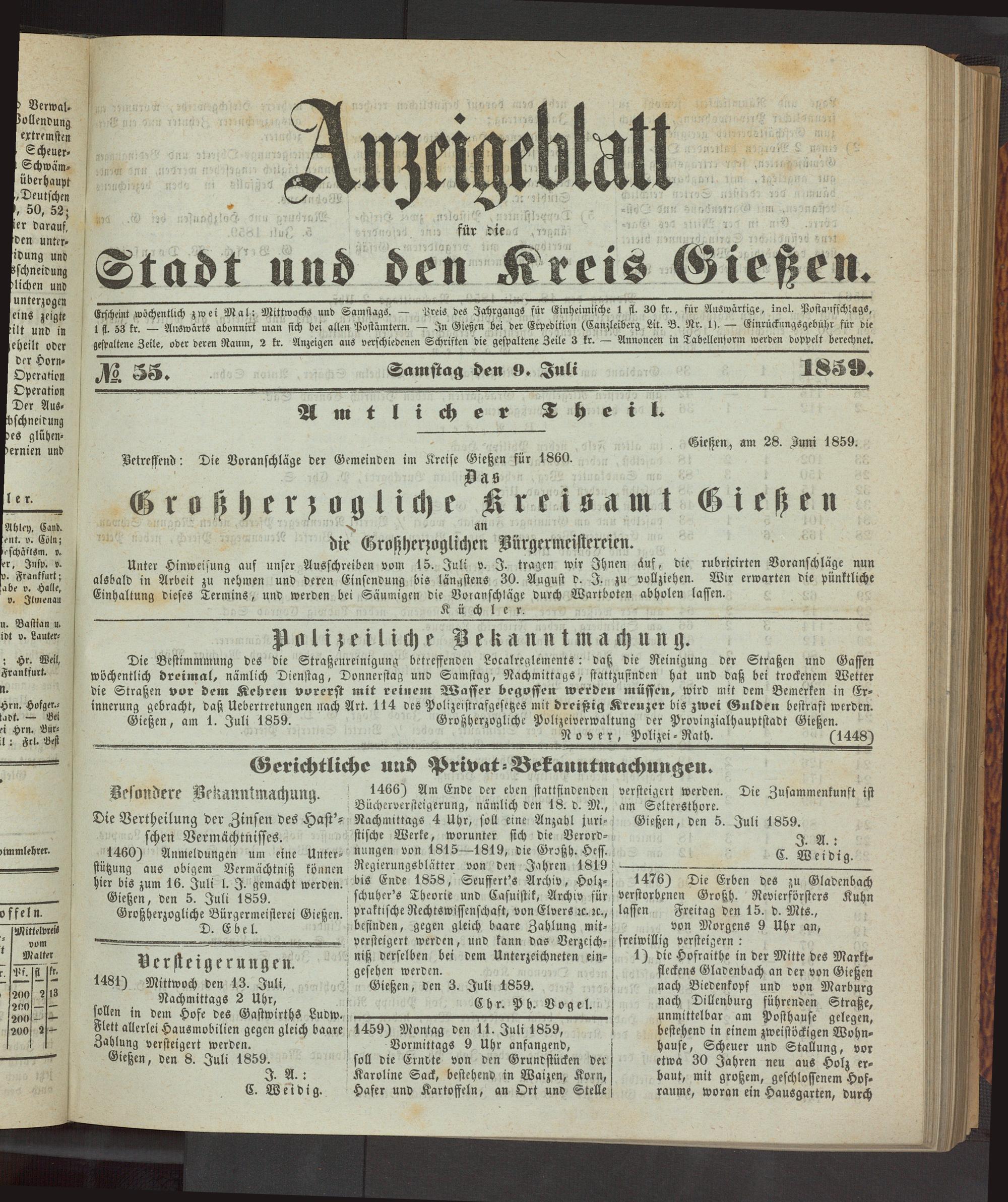 Anzeigeblatt für die Provinzialhauptstadt Gießen. 1840-1867