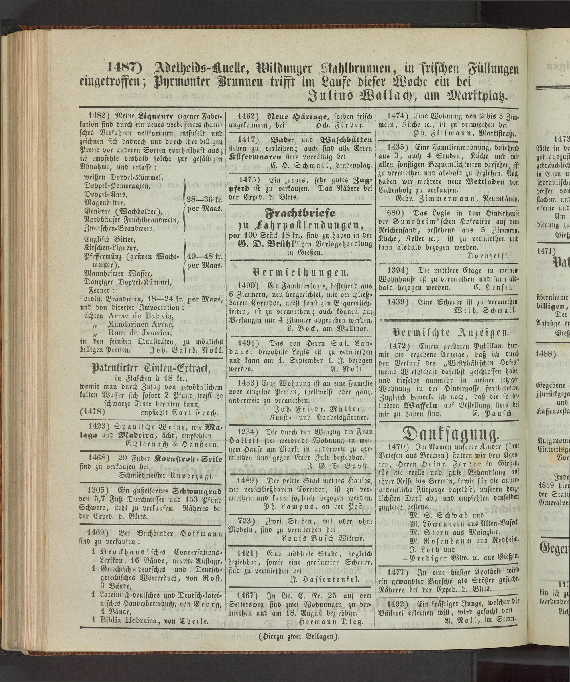 Anzeigeblatt für die Provinzialhauptstadt Gießen. 1840-1867