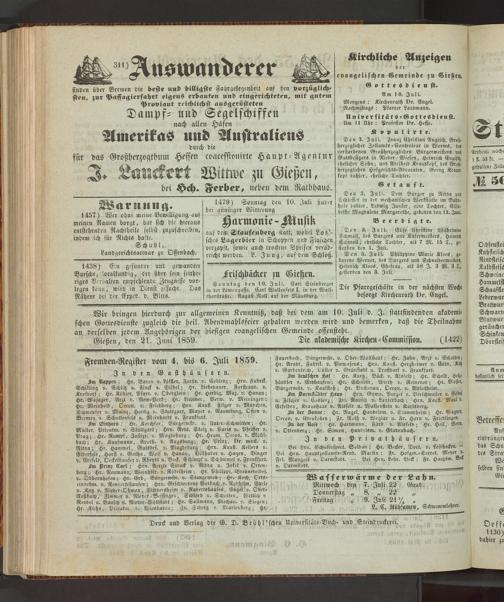 Anzeigeblatt für die Provinzialhauptstadt Gießen. 1840-1867