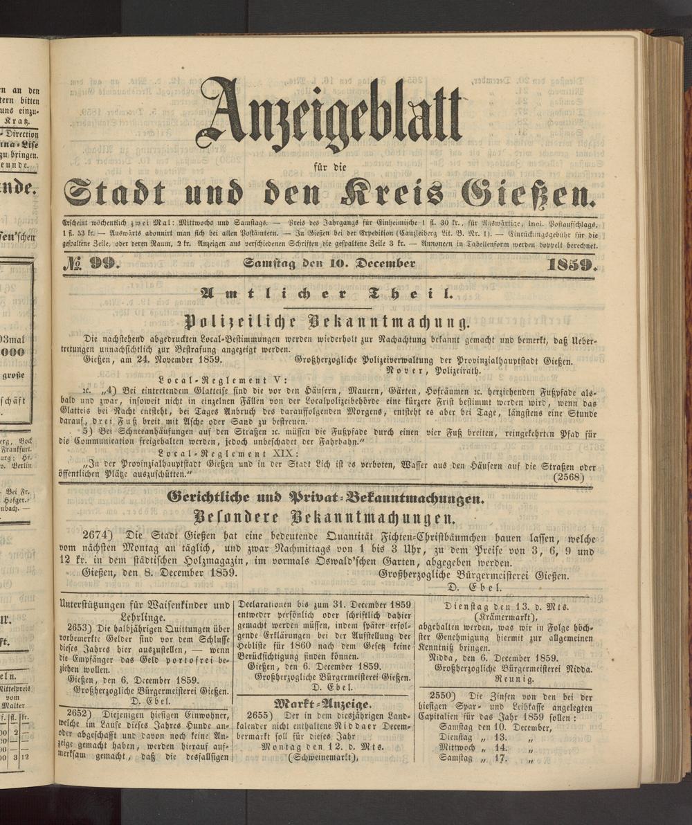 Anzeigeblatt für die Provinzialhauptstadt Gießen. 1840-1867