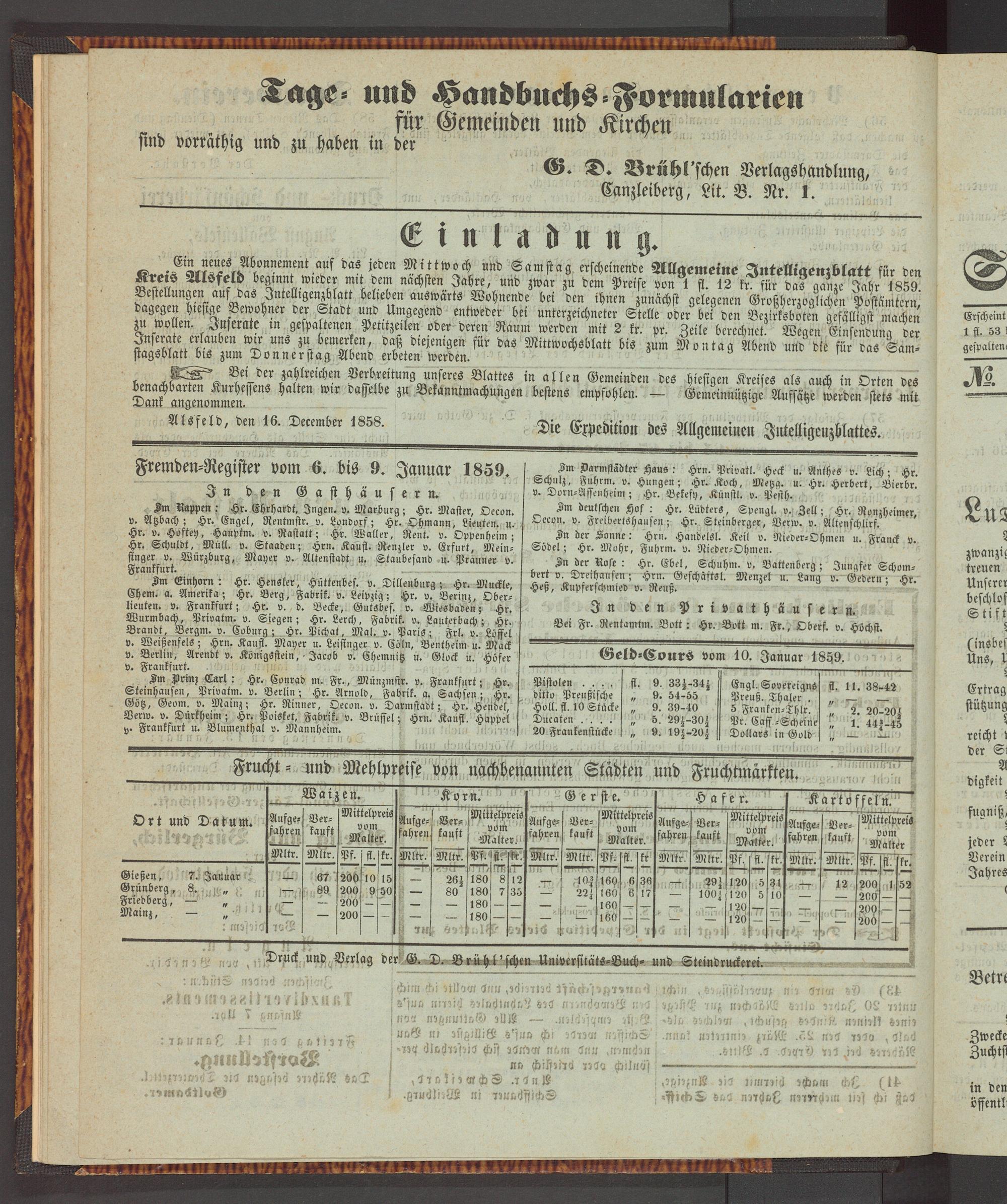 Anzeigeblatt für die Provinzialhauptstadt Gießen. 1840-1867