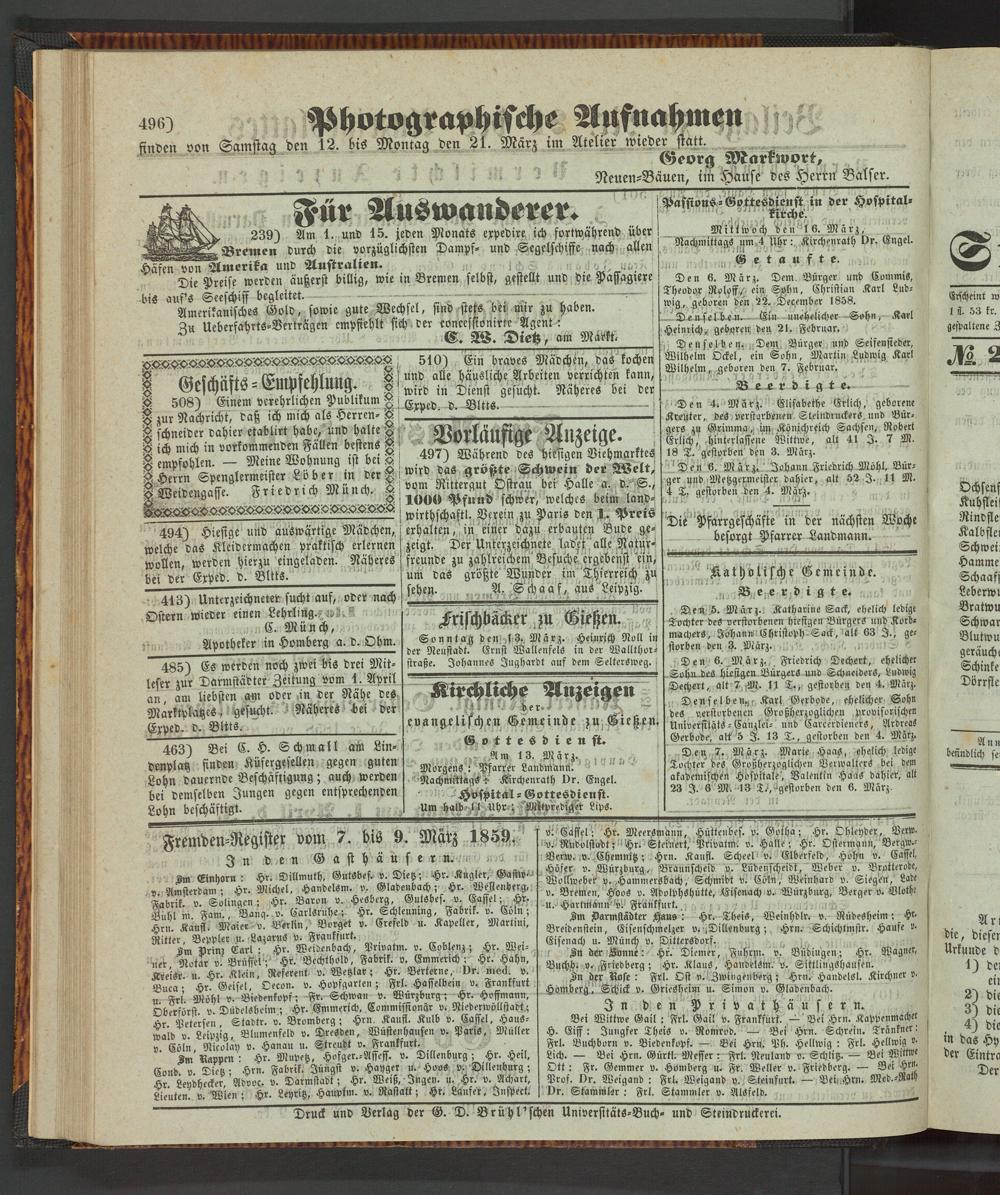 Anzeigeblatt für die Provinzialhauptstadt Gießen. 1840-1867