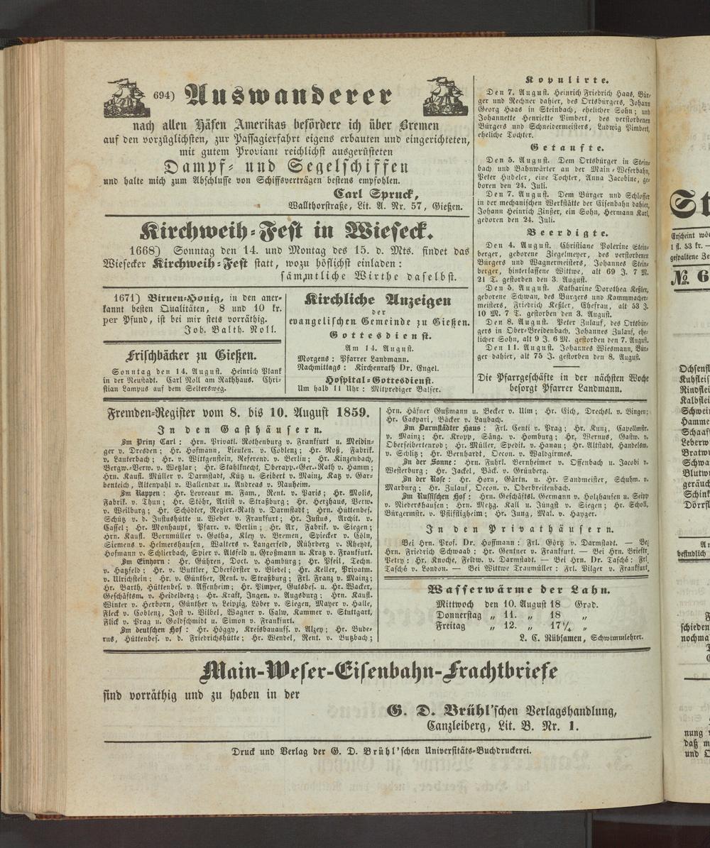 Anzeigeblatt für die Provinzialhauptstadt Gießen. 1840-1867