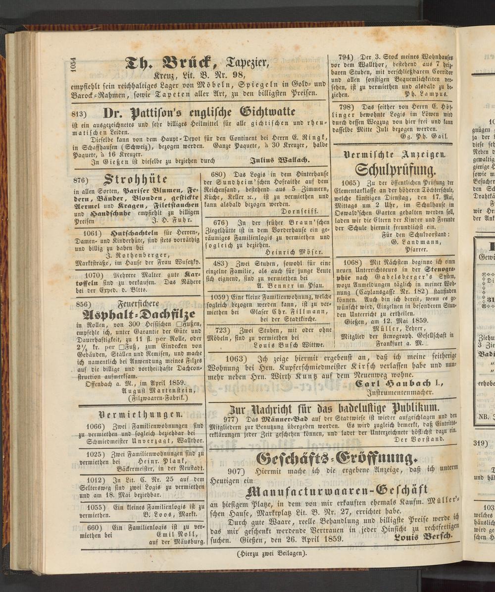 Anzeigeblatt für die Provinzialhauptstadt Gießen. 1840-1867
