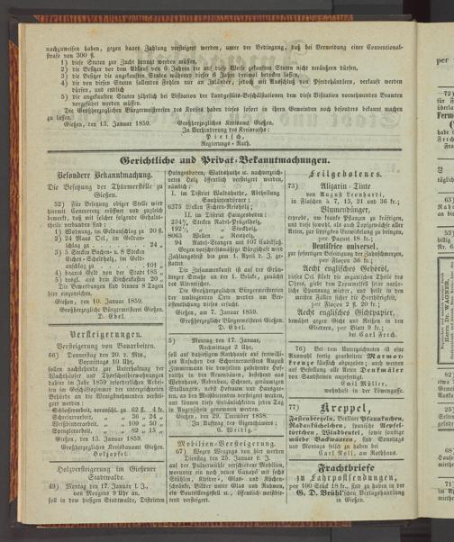 Anzeigeblatt für die Provinzialhauptstadt Gießen. 1840-1867