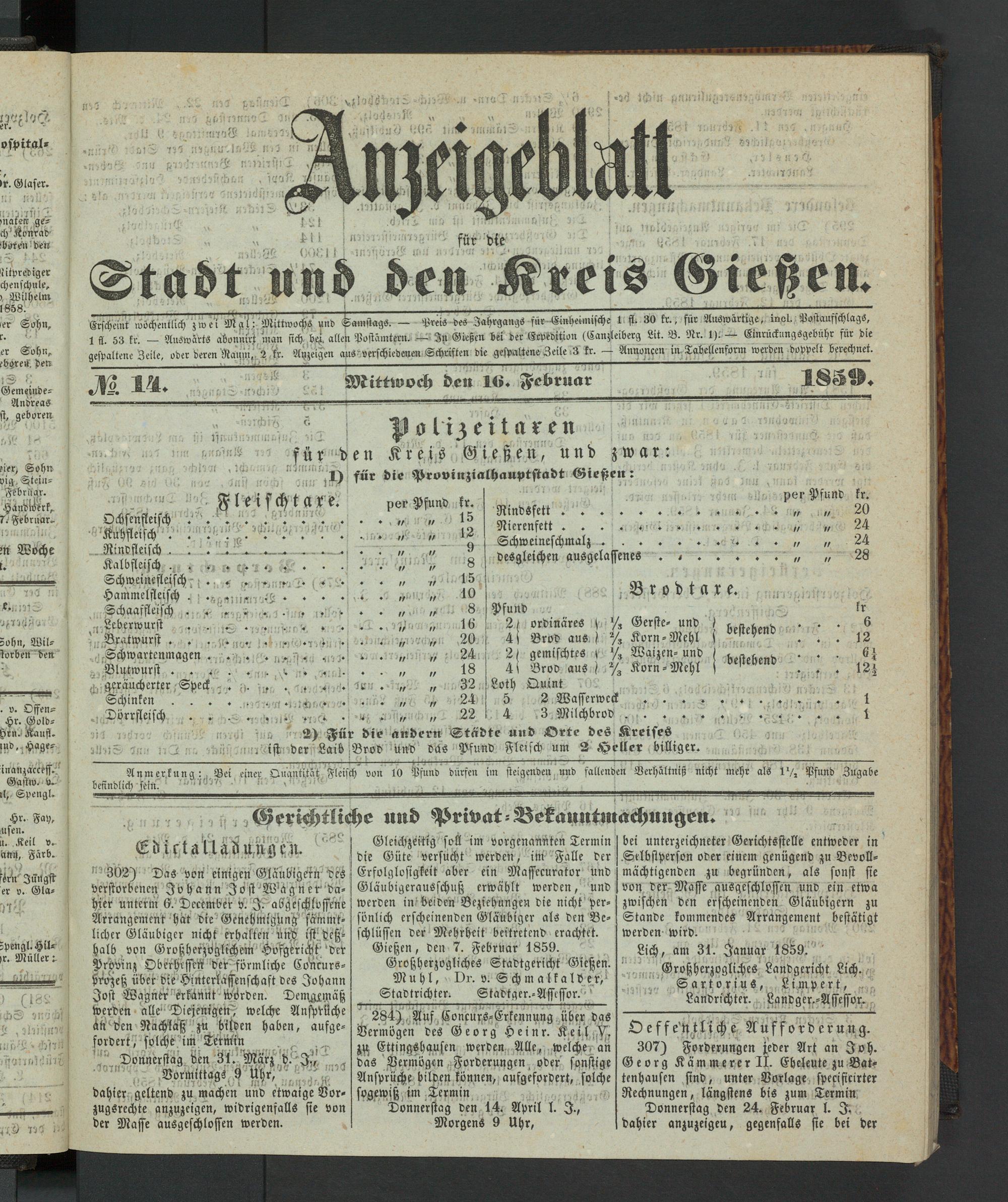 Anzeigeblatt für die Provinzialhauptstadt Gießen. 1840-1867