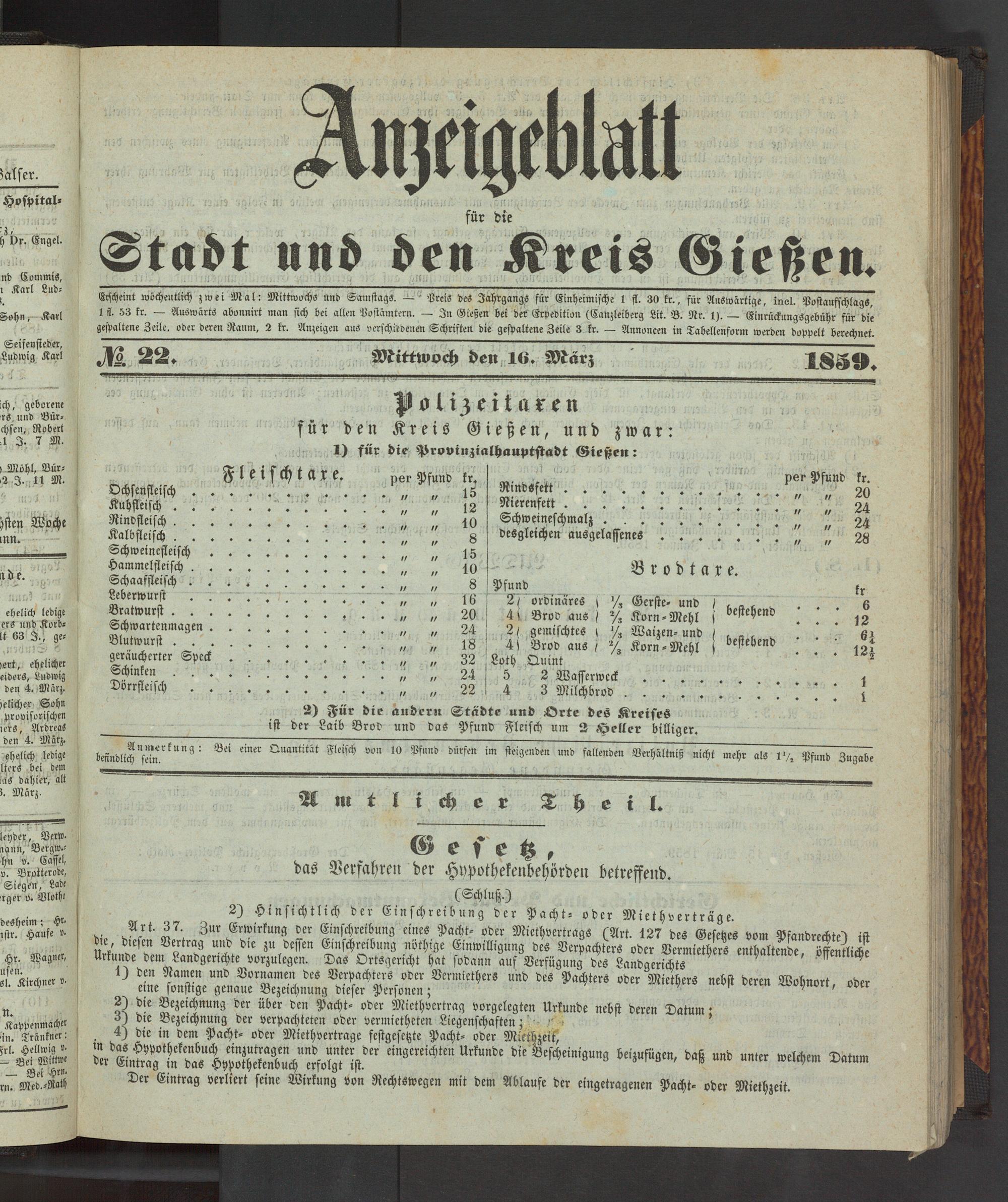 Anzeigeblatt für die Provinzialhauptstadt Gießen. 1840-1867