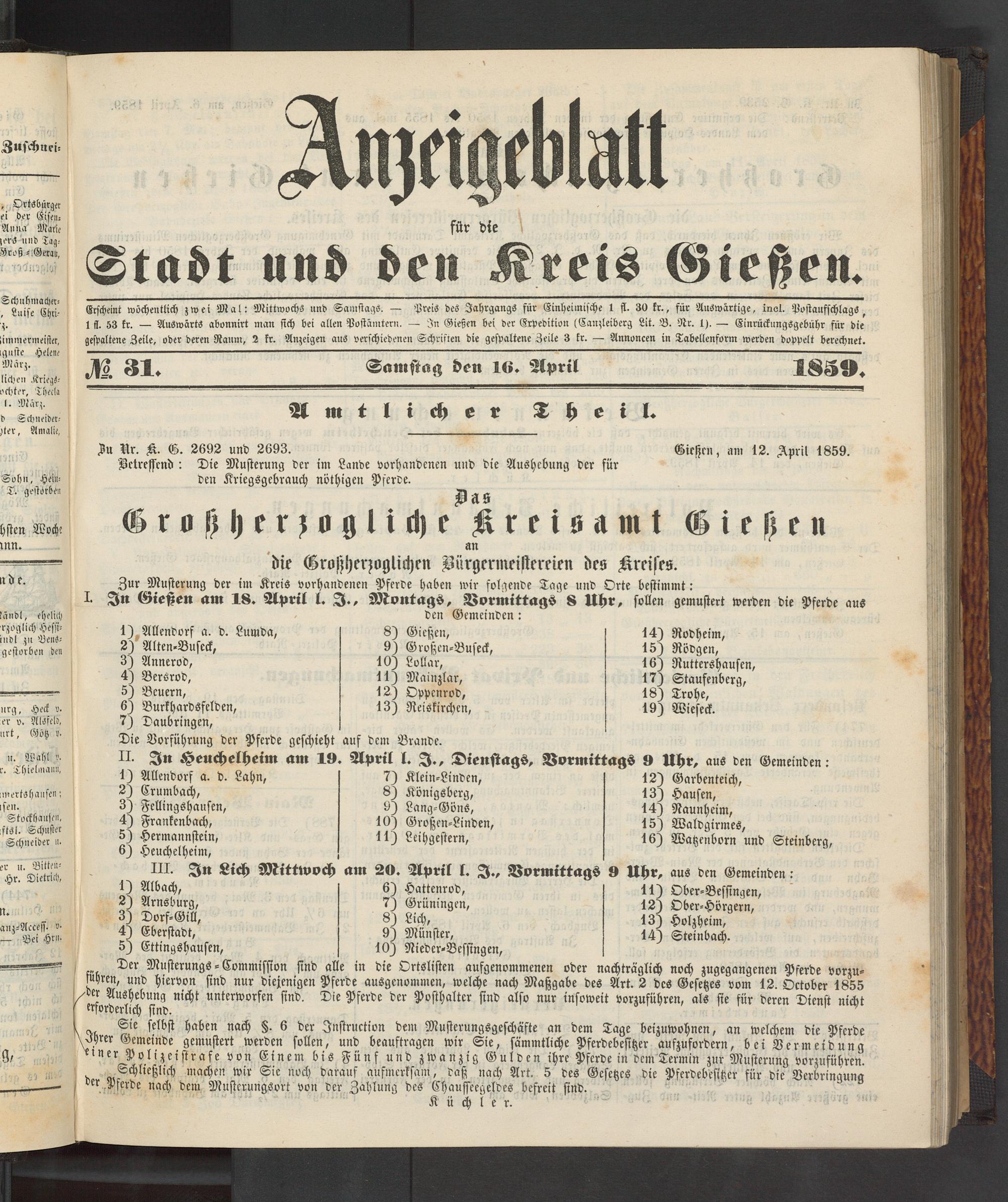 Anzeigeblatt für die Provinzialhauptstadt Gießen. 1840-1867