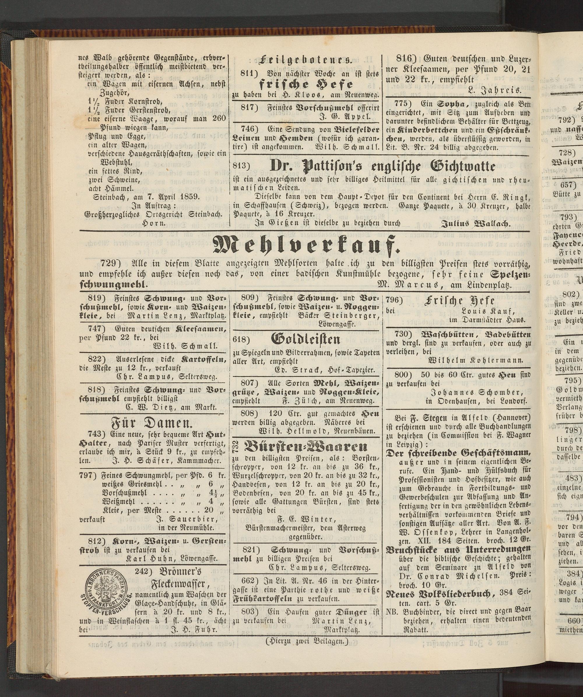 Anzeigeblatt für die Provinzialhauptstadt Gießen. 1840-1867