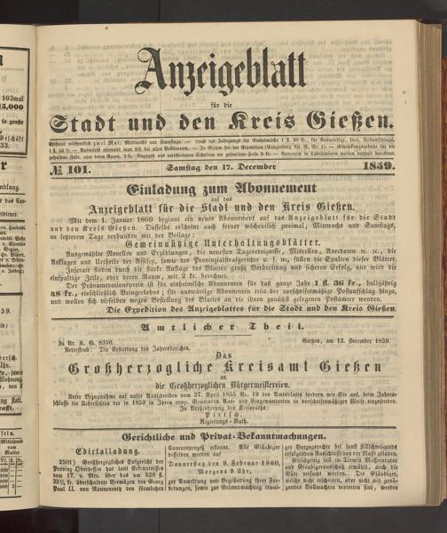 Anzeigeblatt für die Provinzialhauptstadt Gießen. 1840-1867