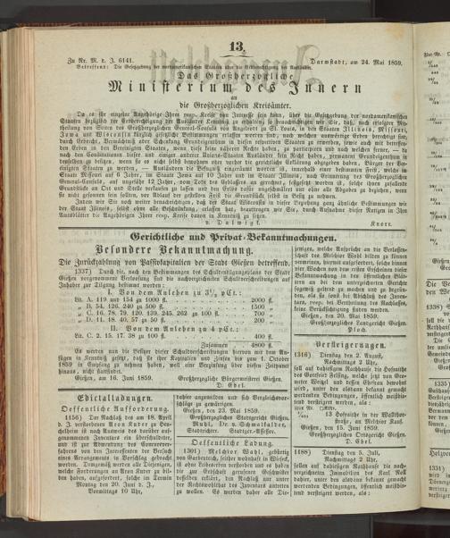 Anzeigeblatt für die Provinzialhauptstadt Gießen. 1840-1867
