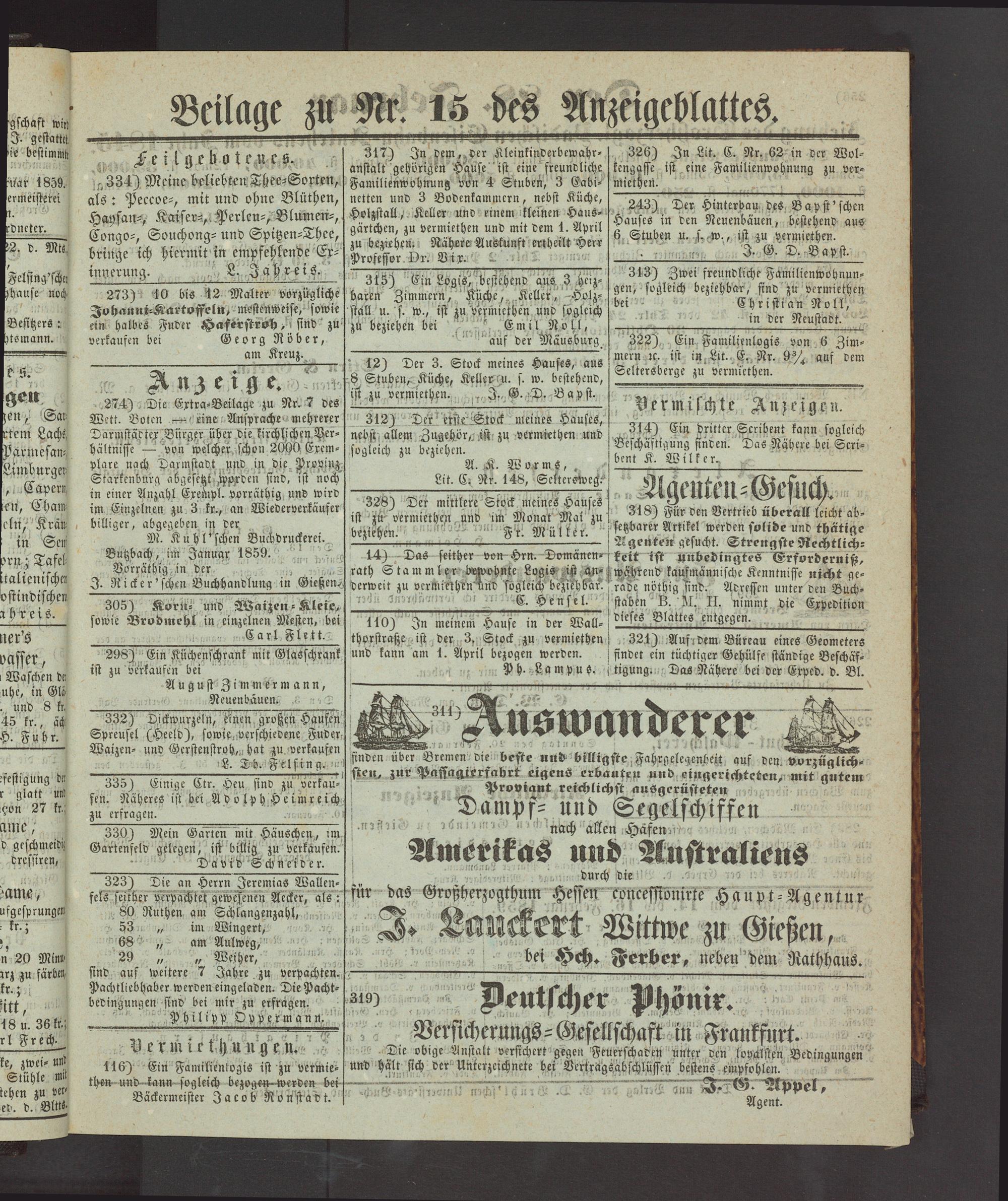 Anzeigeblatt für die Provinzialhauptstadt Gießen. 1840-1867