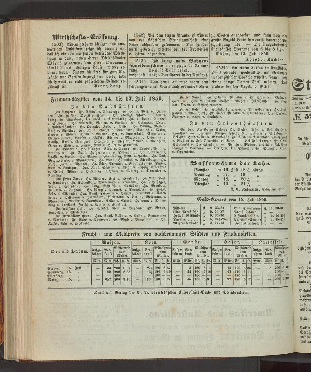 Anzeigeblatt für die Provinzialhauptstadt Gießen. 1840-1867