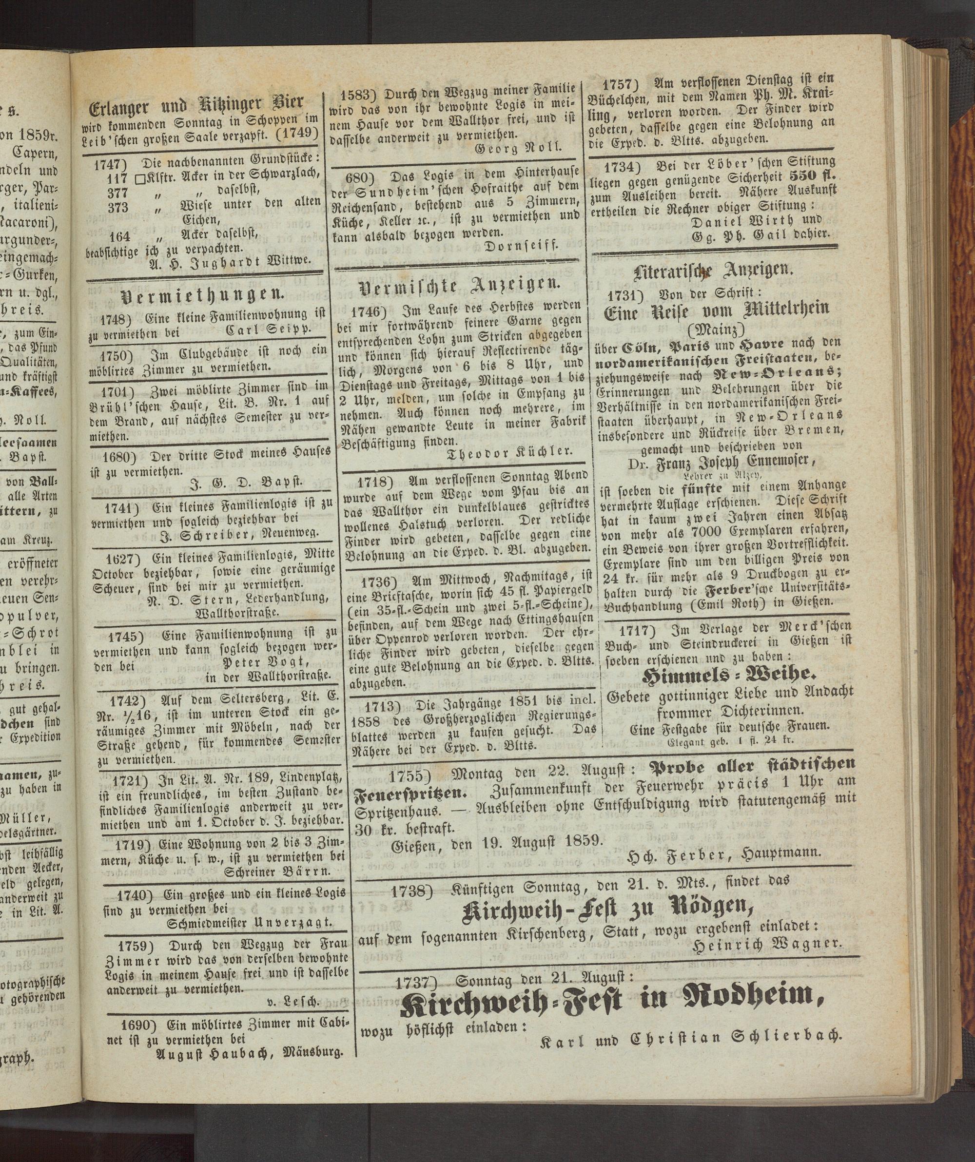 Anzeigeblatt für die Provinzialhauptstadt Gießen. 1840-1867