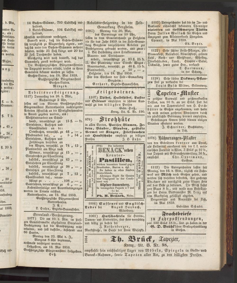 Anzeigeblatt für die Provinzialhauptstadt Gießen. 1840-1867