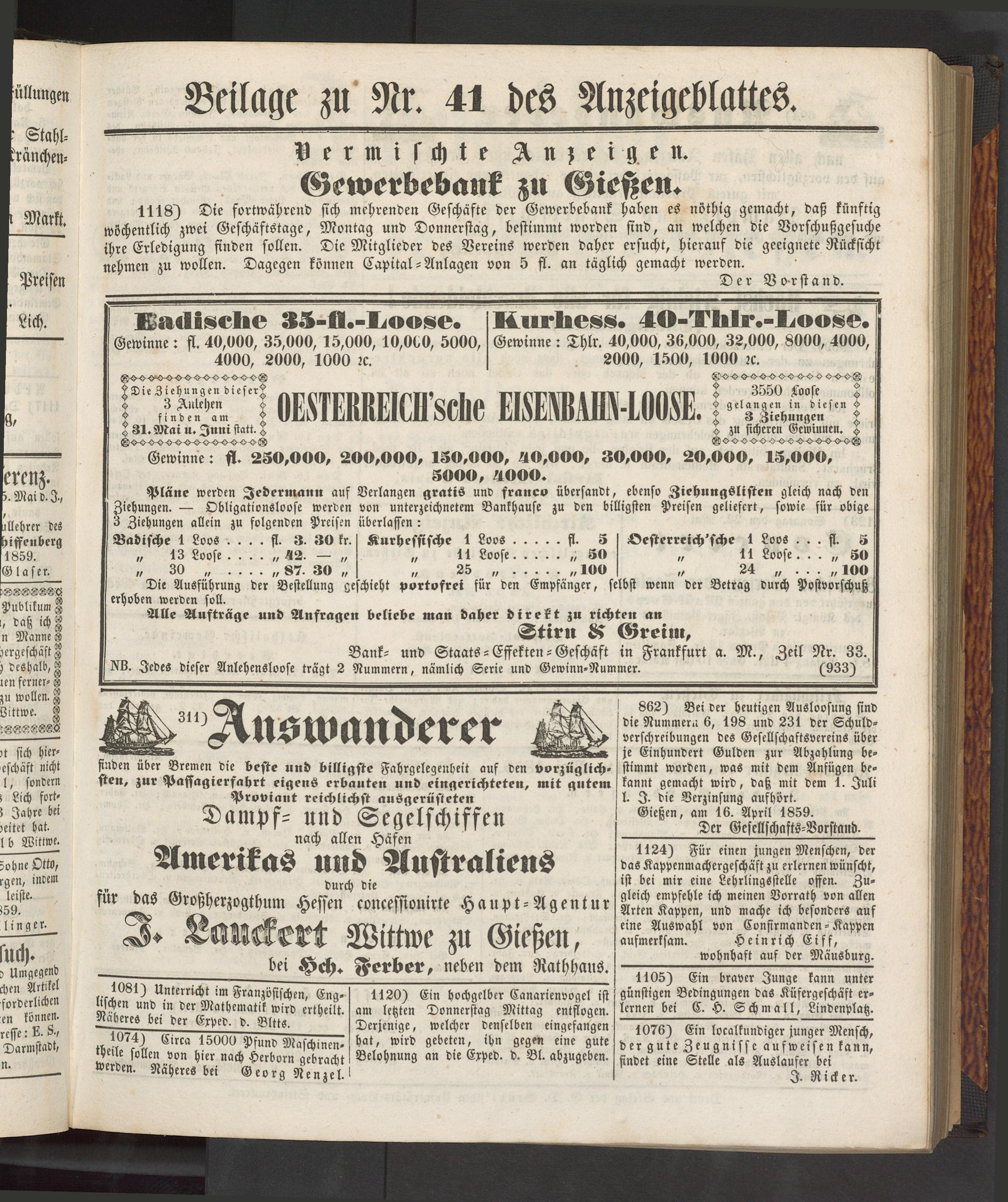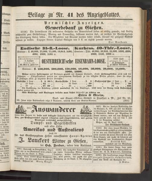 Anzeigeblatt für die Provinzialhauptstadt Gießen. 1840-1867