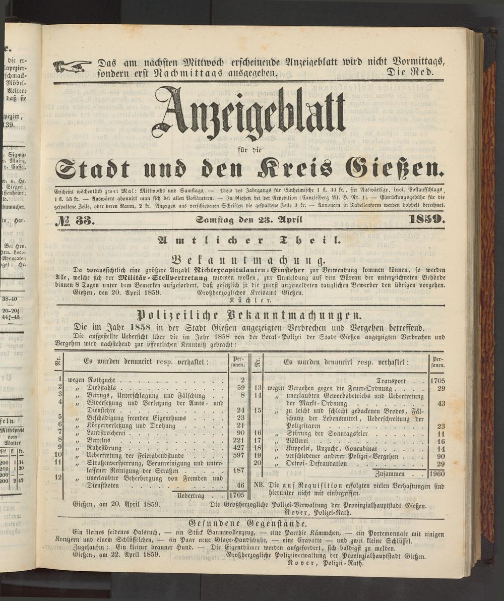 Anzeigeblatt für die Provinzialhauptstadt Gießen. 1840-1867